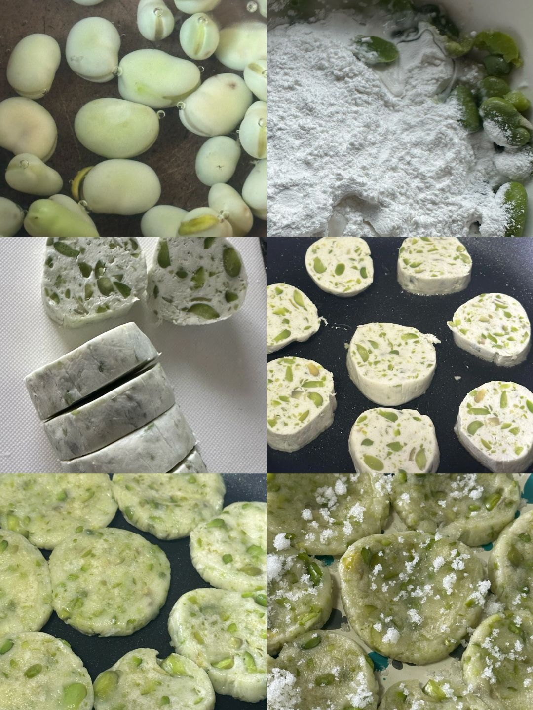 石板:55g熟胡豆瓣(好像别人用的生的,我怕没煎熟吃了胀气就煮熟了)、55g糯米粉、30g水