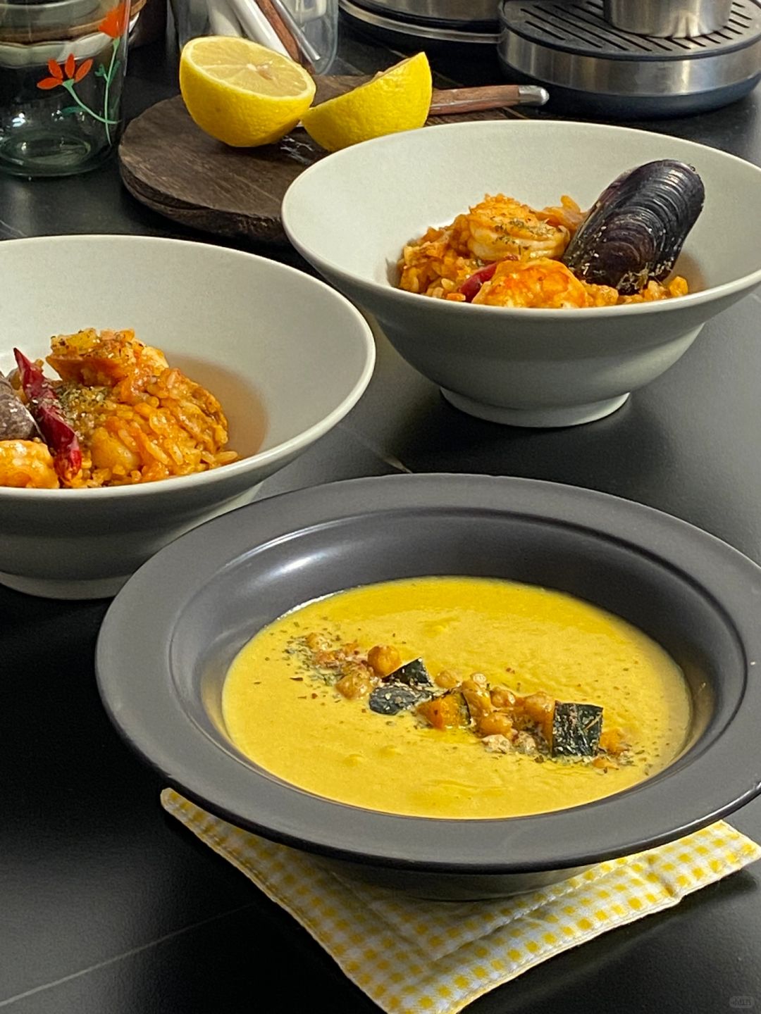 今日菜谱📜辣海鲜烩饭配上一碗肉桂南瓜汤🥢
