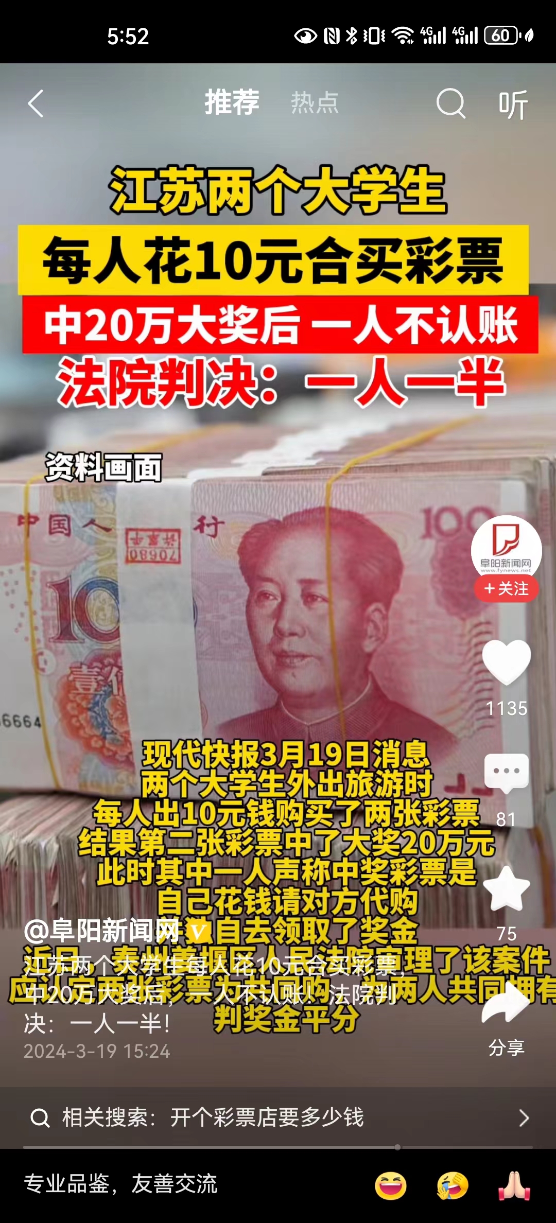 18万元就验证出了两家的人性,验证出这种发小兄弟情如此不堪一击。现在针对彩票的纠纷越来越多,有些是网上买彩票产生中奖之后的纠纷,有些是委托彩票店主帮忙买彩票拍照片引发中奖纠纷,但是这种发小一起买彩票,引发纠纷的还是比较少。我真的觉得很不值得呀!大家觉得呢?