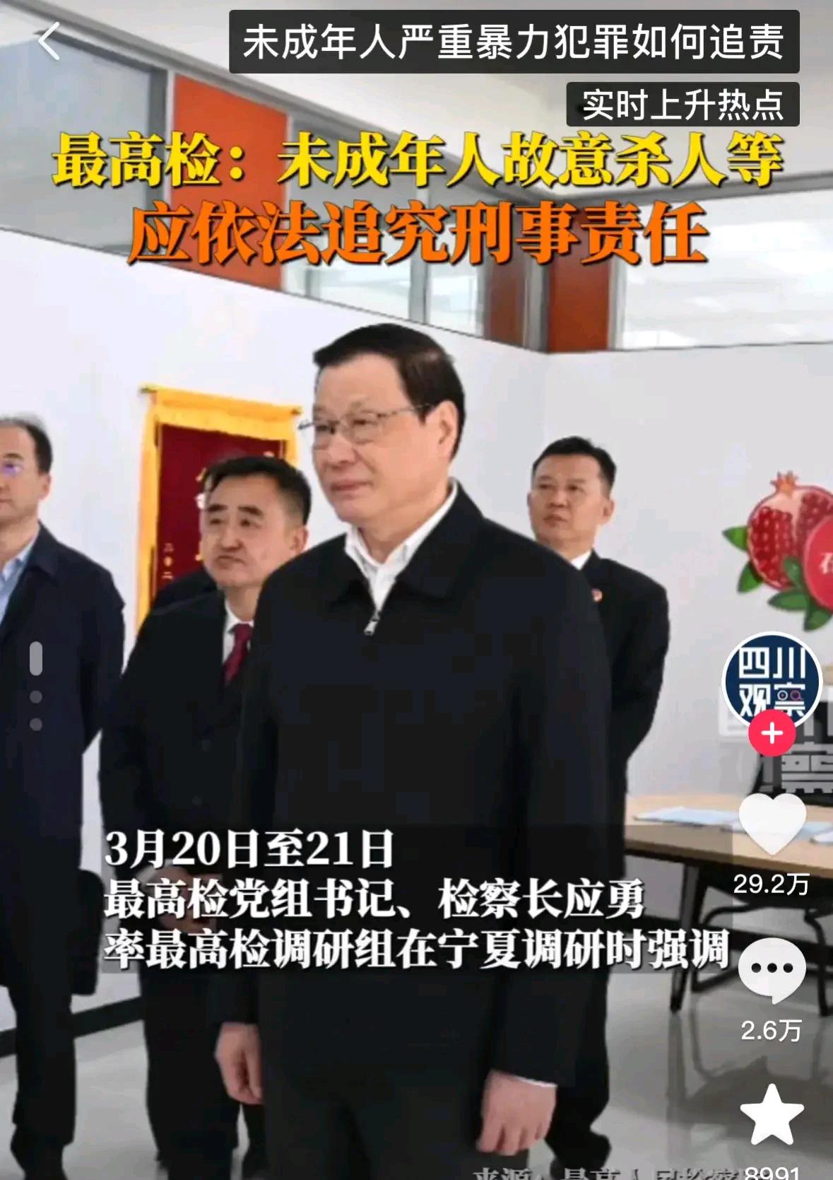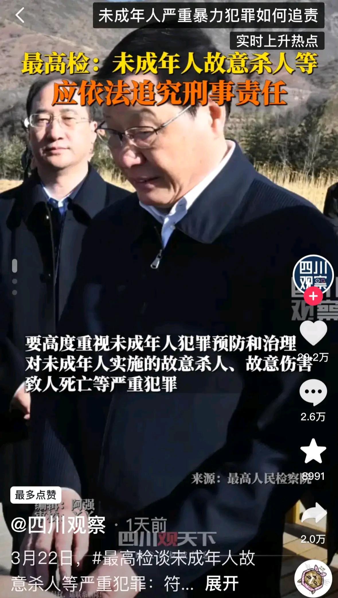 真的是振奋人心!心里热乎乎的!最高检终于对未成年人故意杀人做出指示。最高检:"对未成年人实施的故意杀人等严重犯罪,会依法追究刑事责任。” 一句话掷地有声! 我们很多人的心里那块大石头,终于落地。 近些年来,未成年人违法犯罪事件时有发生,校园欺凌霸凌就不说了,但是居然有小小年纪致人死亡的恶性事件频频发生。 一个13岁的孩子杀死一个4岁的小女孩。 3个13岁的孩子杀死一个13的同班同学。还是有预谋的谋杀。 可怕不可怕? 令人想不到的是,那个13岁杀死4岁的小男孩,就被教育6个月。 然后这个孩子回家了,他继续上学,继续心安理得的过自己的生活。 现在,邯郸少年又做出惊天狠毒案,这个问题又一次摆在我们面前。 就是因为惩罚力度不够,让这些小小年纪的孩子,越来越猖狂,不断挑起事端。 邯郸少年这个典型案例,又让我们每一个做父母的,做家长的,都在议论,围观这个事件。 严厉惩罚,才能让想犯罪的人心生畏惧, 杀鸡儆猴,才能让很多孩子心生畏惧,不敢再犯。 子不教,父之过,师之惰,孩子家长,学校老师,都会帮助监督,帮助教育。 过去哪有这样的事情发生,现在的网络时代,现在的孩子们的比以前的孩子懂得多,知道的多。 网络发达,十几岁的孩子,从网络学到很多连大人都不知道的事情。 有时候不能拿他们当孩子看,十几岁的少年,就已经什么都懂了。 看看很多校园欺凌霸凌,有时候就是小黑社会。 小小的初中生居然知道把小女孩拉到隐秘的角落进行猥亵。 邯郸3少年团伙作案,居然知道提前挖坑,做好准备。 看看这些孩子的行为,能说他们是孩子吗? 他们已经完全具备了成年人才有的思维和行为。 身体是孩子,思维已经超过成年人。 如果再让年龄作为量刑的标准,这样子的小恶魔会越来越多。 我们社会在进步,法律也要跟上。 希望这次未成年人保护法能够跨越一大步,这也是人类进步的一步。 我们都是做父母的,都希望未成年保护法,保护的是真正需要保护的孩子们。 对于这个事情,朋友们怎么看?#各种欺凌知多少# #少年无知犯下错# #少年时犯下的错# #严惩还是教育# #为受害少年发声# #谈谈家庭暴力# #3个害童# #告诫青少年# #少年罪行#