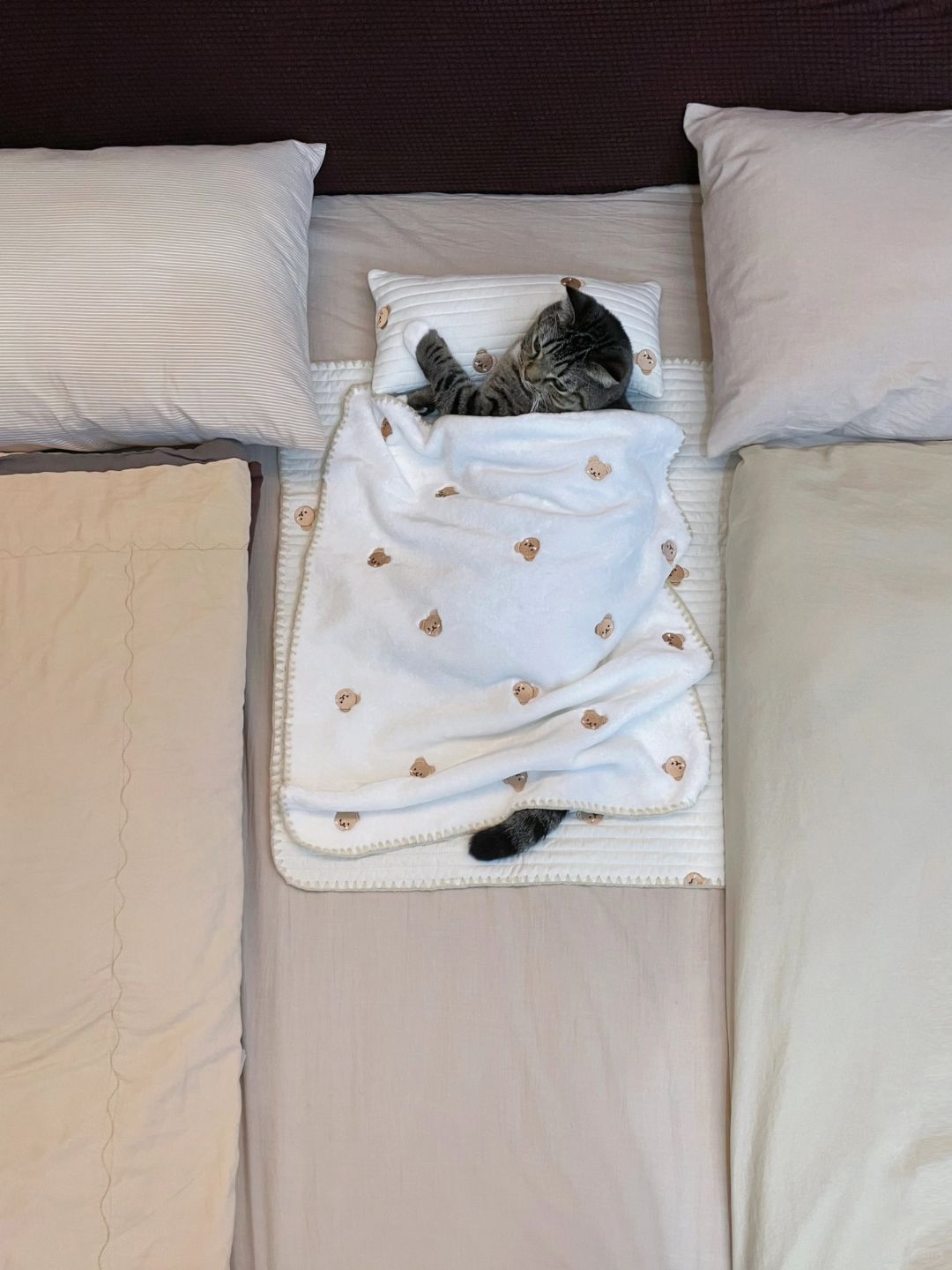 当着猫猫的面吵了一架,两个人谁也不想理谁,所以让它睡中间(虽然它平时经常不洗脚),看着他呆呆傻傻的..好像有点被吓到了,会不会影响孩子心理健康呀?😢