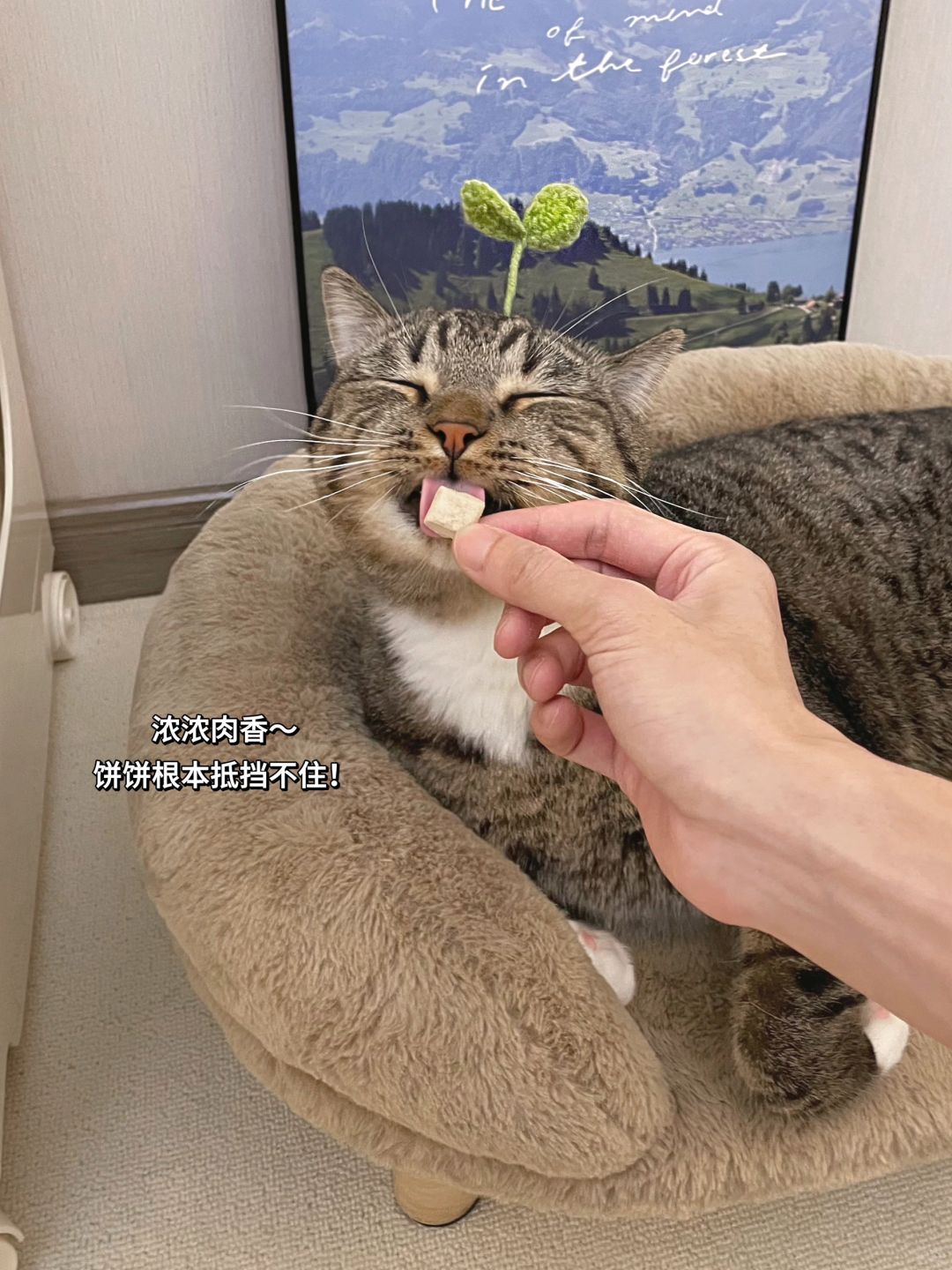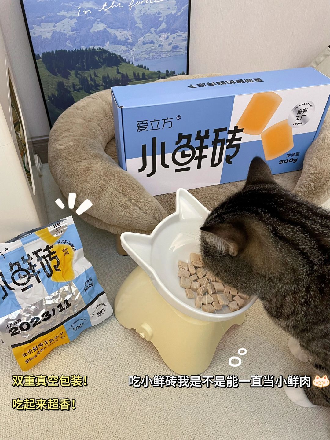冬天到了,饼变小馋猫了,老想吃东西,零食吃多了又不好,我就给它喂爱立方小鲜砖~