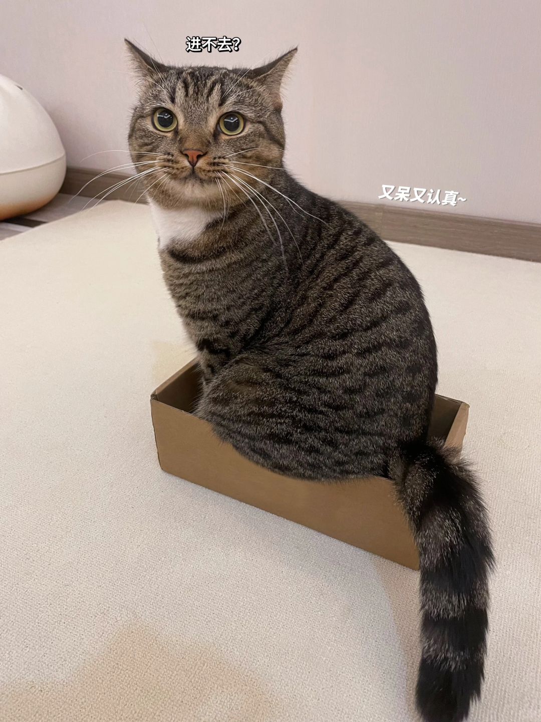 饼崽今天钻不进最喜欢的纸盒了,他呆呆地在那里认真思考,好像不太想的明白[偷笑R]
