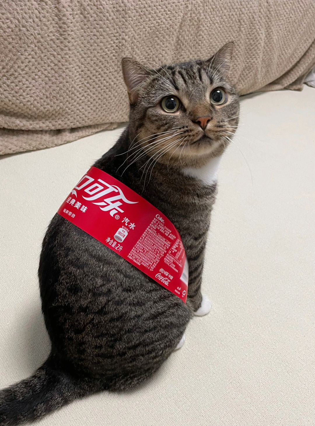 起猛了,嘴馋,看我家猫都像是可乐,还挺大一瓶,请ee们喝~