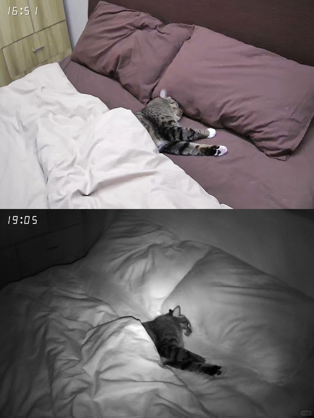 它怎么躺我床上睡得那么舒服啊,可恶!能不能让它替我上班[皱眉R]!回家我开灯了饼子才睡眼惺忪的准备起床,还给我留下一床铺的猫毛,没办法,只能给它清理了呗~