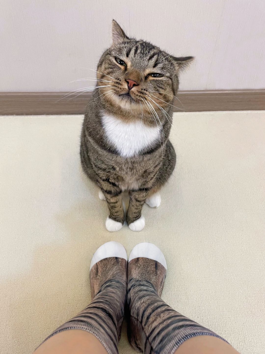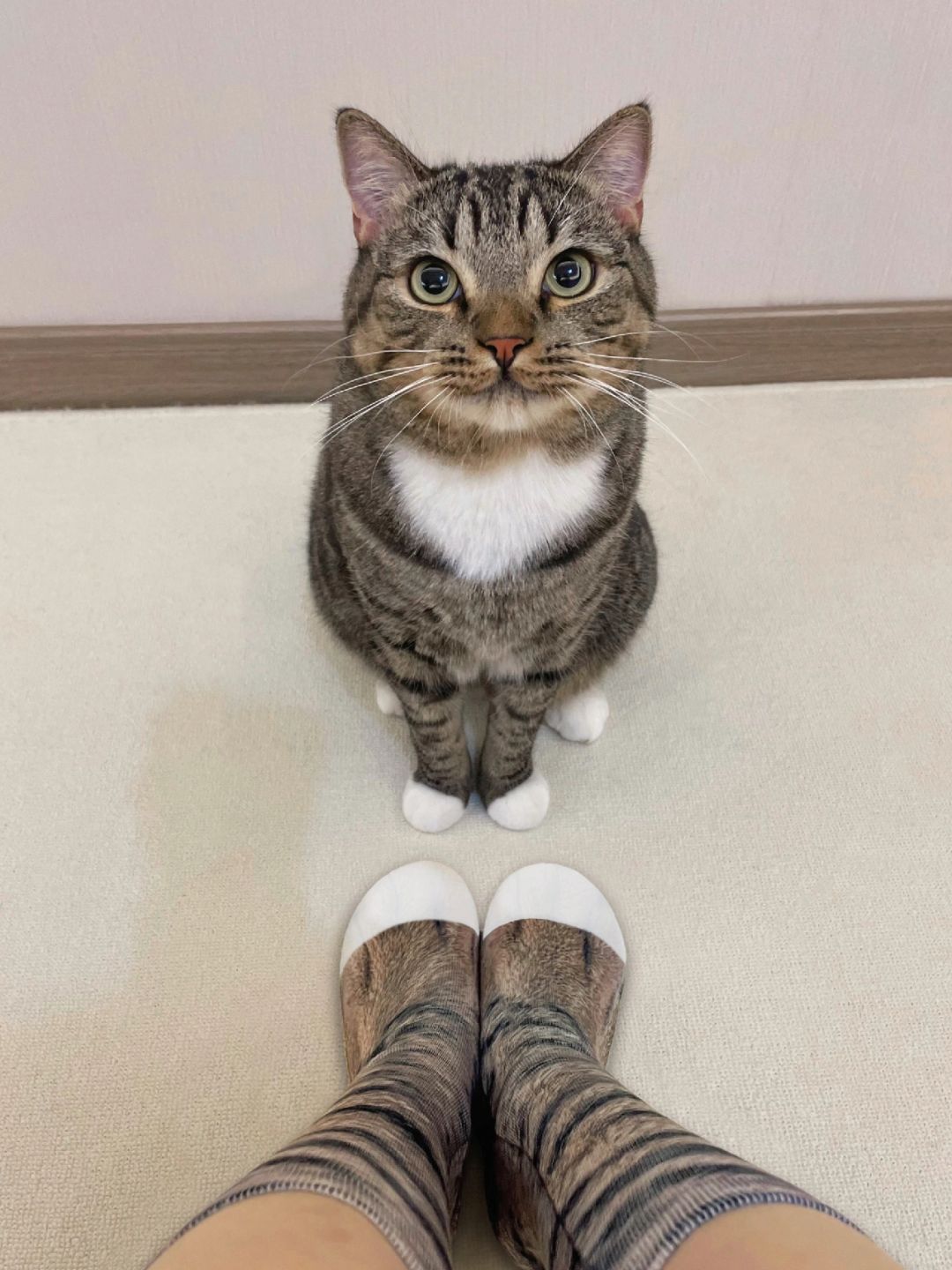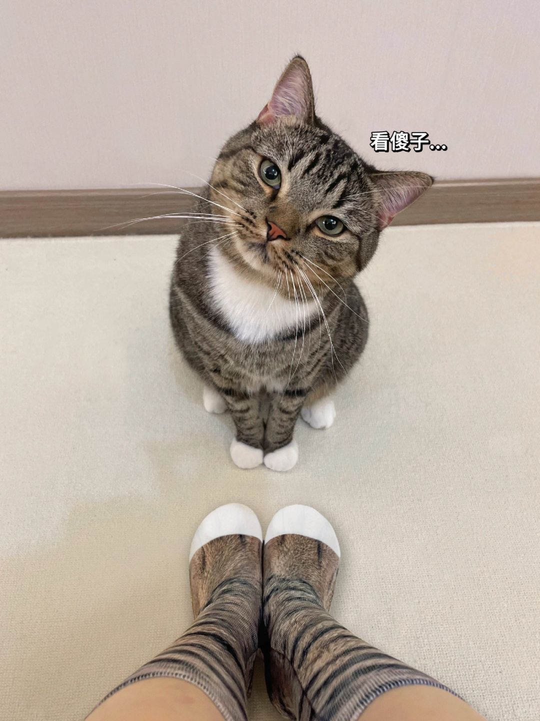 你看我们一模一样的花纹和白爪爪,我真的是你亲妈,你以后得好好听我话~