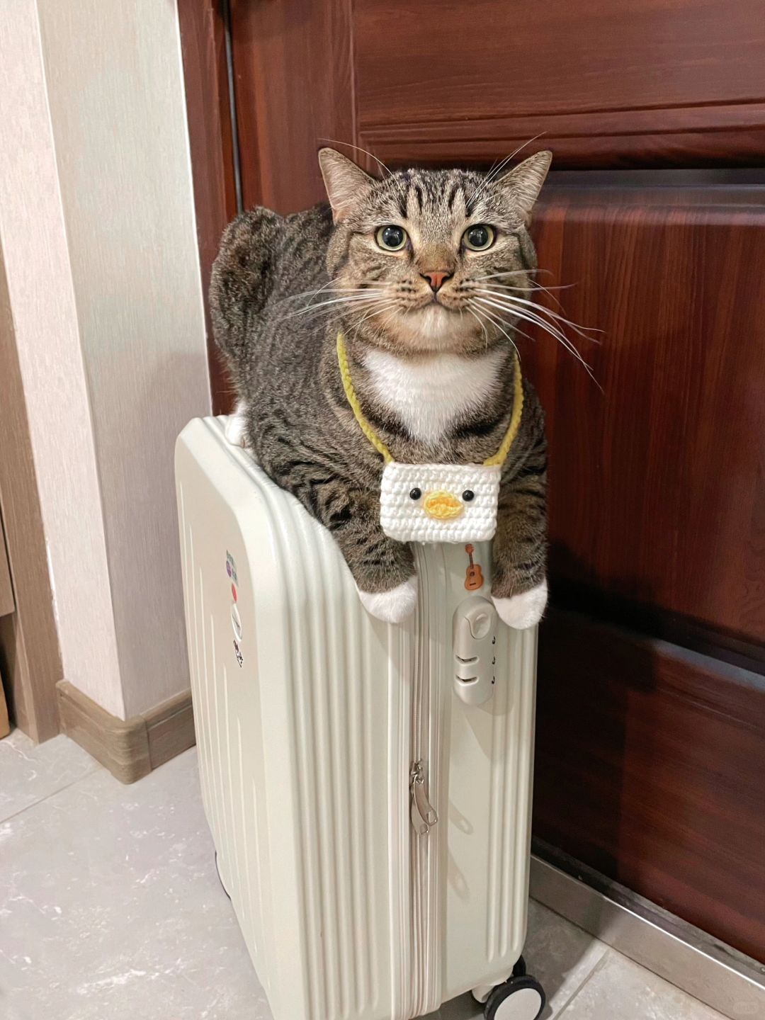 小猫真的很聪明,我把行李箱放门口它就好像知道我要干嘛了,直接就蹲上面守着了。但是饼饼呀真的不是故意不带你,高铁你坐不了啦!