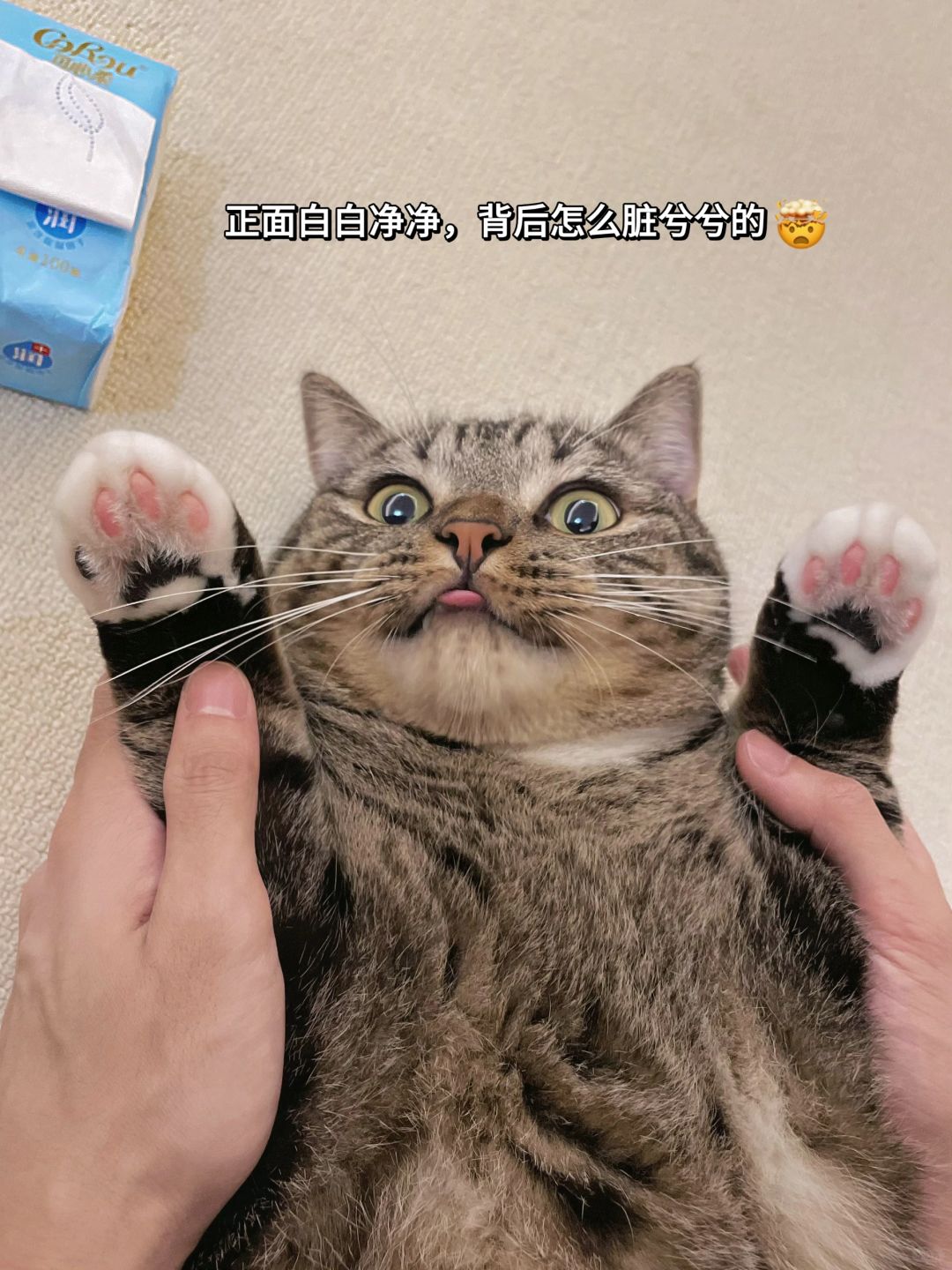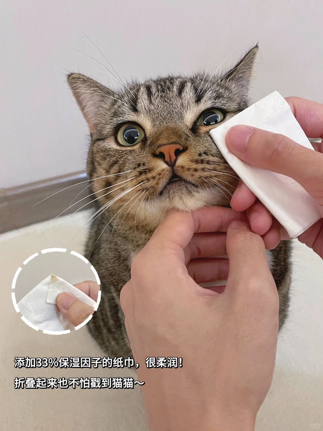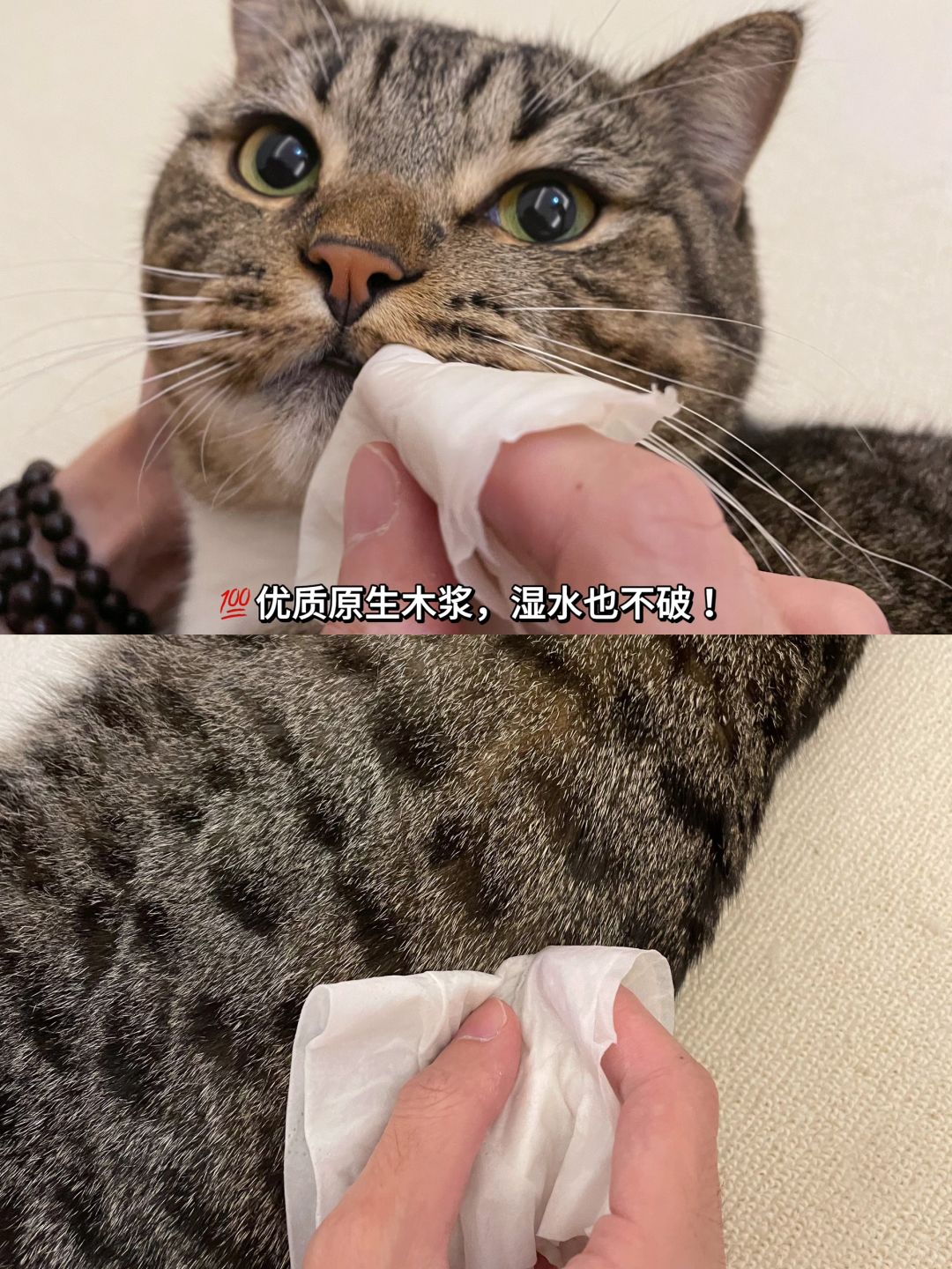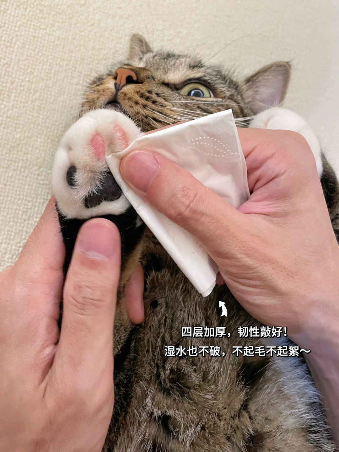 之前用普通纸巾给饼饼清理泪痕和爪爪和pp,因为叠起来有硬角,不小心戳疼过它,所以每次清理都超费劲,这小子也一直反抗[叹气R]