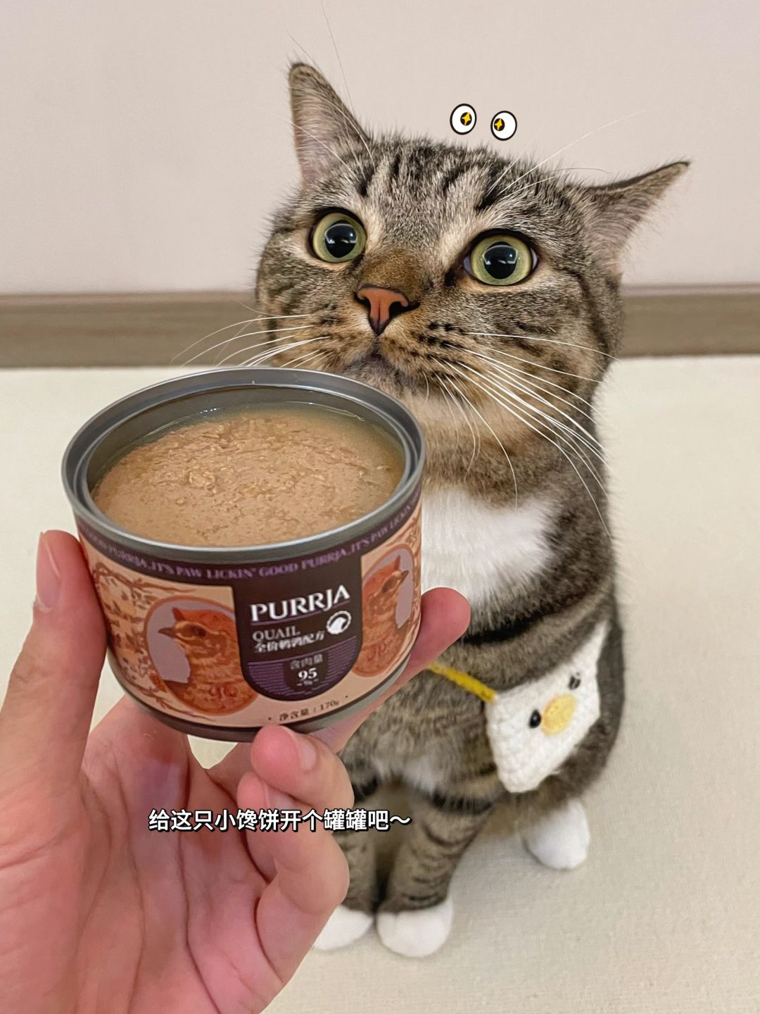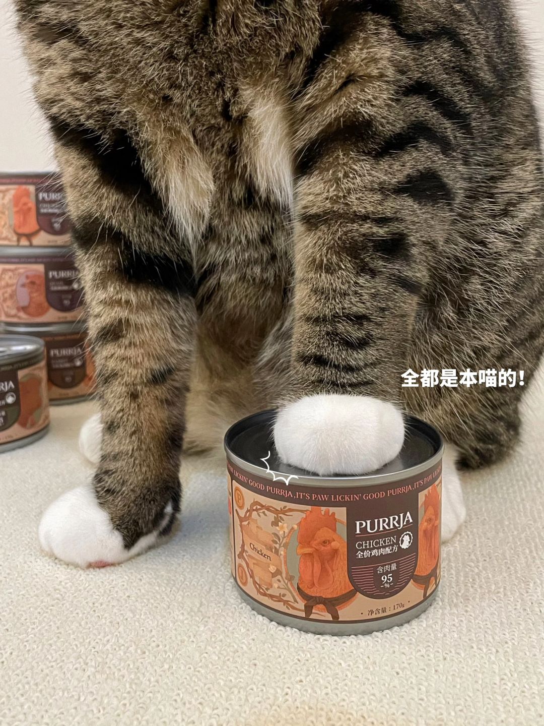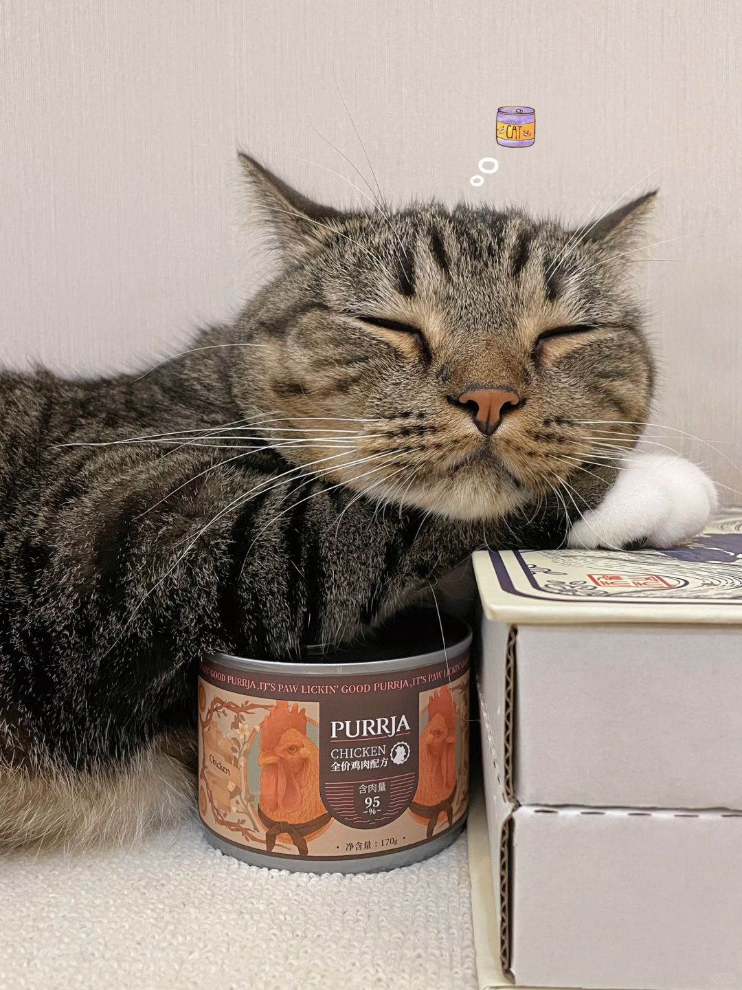 真拿他没办法,瞅着也到饭点了,再给他开罐囤的Purrja主食罐好了,这个罐真的超级扎实,有很浓郁的肉香,我都想偷吃一口。口味也很多样,4个口味饼饼都很爱。15%蛋白质搭配6%脂肪,高蛋白中脂肪,每天吃也不担心饼饼身体有负担!