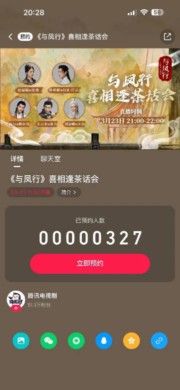 与凤行今晚九点直播,距离开播半小时,327个人预约,什么水平?