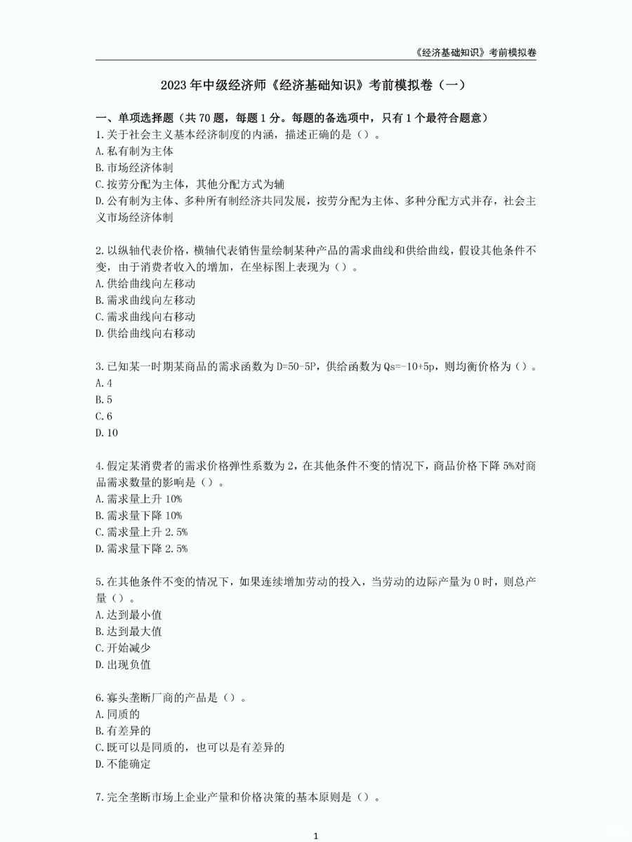 抢救一下!中级经济师考前押题卷🔥准哭