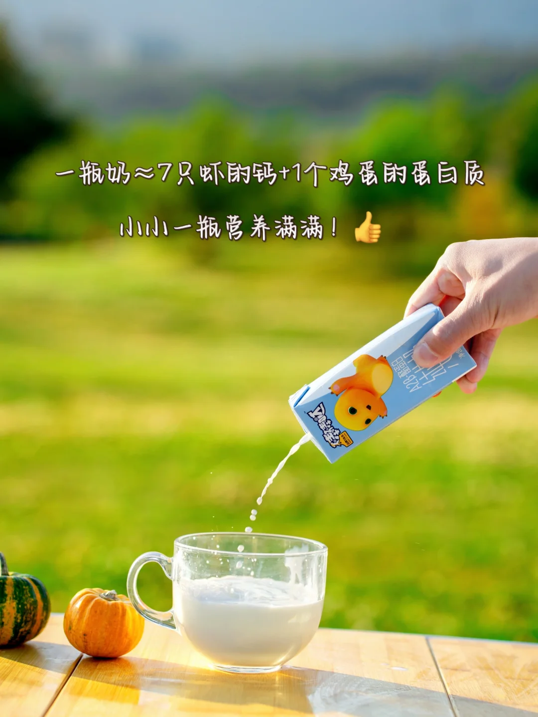每盒奶里有7.2克蛋白质和240mg钙,相当于孩子吃了1个鸡蛋7个虾,完全不用担心户外这一整天的营养不够补。✨