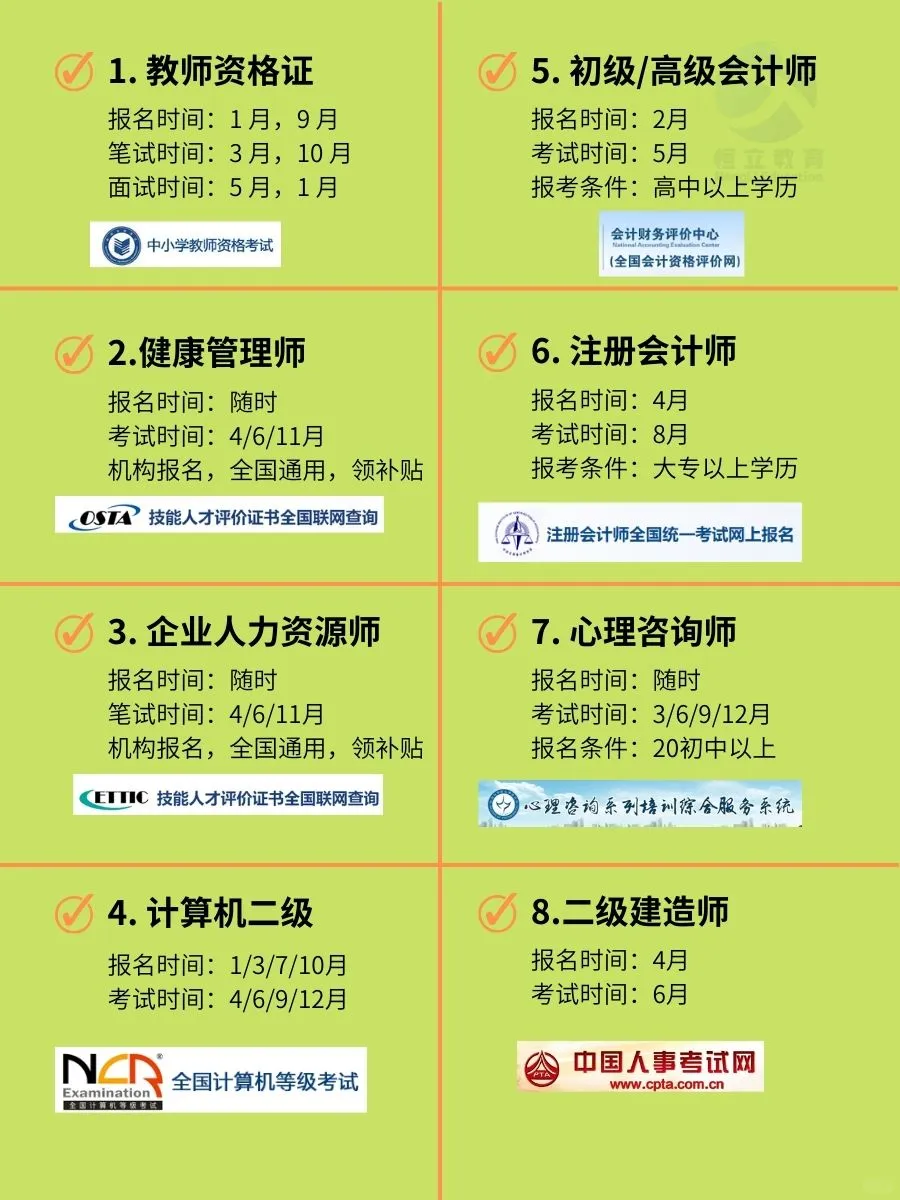 持续学习,才是自己增值的阶梯。2024年全名考证时间表,考下自己的含金量证书,明年取证加薪吧!