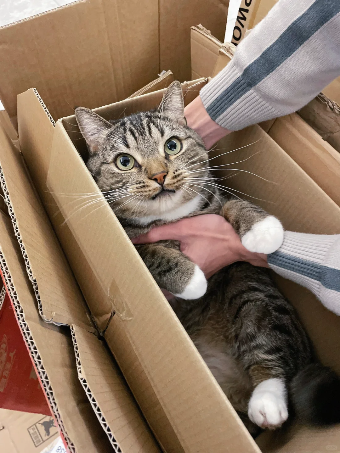 今天让小区门口的大爷来收废品,搬走时大爷说怎么变重了?结果一看饼子不知啥时候黏在里面了🙂,难道想试图伪装成海参,就这么爱纸箱吗?要不一起卖了得了!(ー̀дー́)