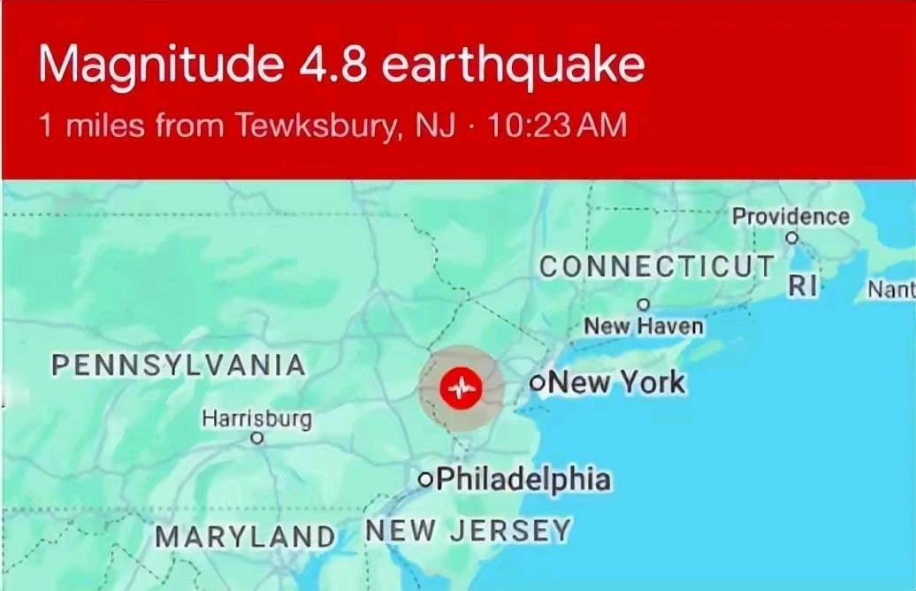 吓我一跳,以为美国纽约地震是140级,我眼睛好像出了问题,可能老花眼了,明明是4.8级地震,看成了140级地震,还把自己下一吓一大跳。 据央视新闻4月5日晚报道,美国地质调查局消息,当地时间4月5日10时23分,美国东海岸发生4.8级地震。 4.8级地震,毛毛雨啦! 前几天,台湾好像7.3鸡地震,比美国厉害多了去了。 新闻说,这个地震震中距离纽约市大约60公里,震源深度约5公里。 宾夕法尼亚州、新泽西州、纽约州、康涅狄格州均有震感,目前暂无伤亡报告。 听说,自由女神都颤抖了。