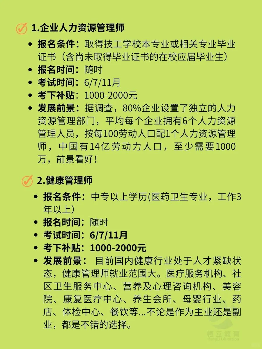 相信很多同学曾经都听过这样的说法:“证多不压身”“多考几个证,多几个找工作的机会" - 而且部分证书还能领取补贴,能领的小恒已经标注在图里啦。希望大家一起努力吧,不管是学历,还是技能,都要加油再上一层楼。 .