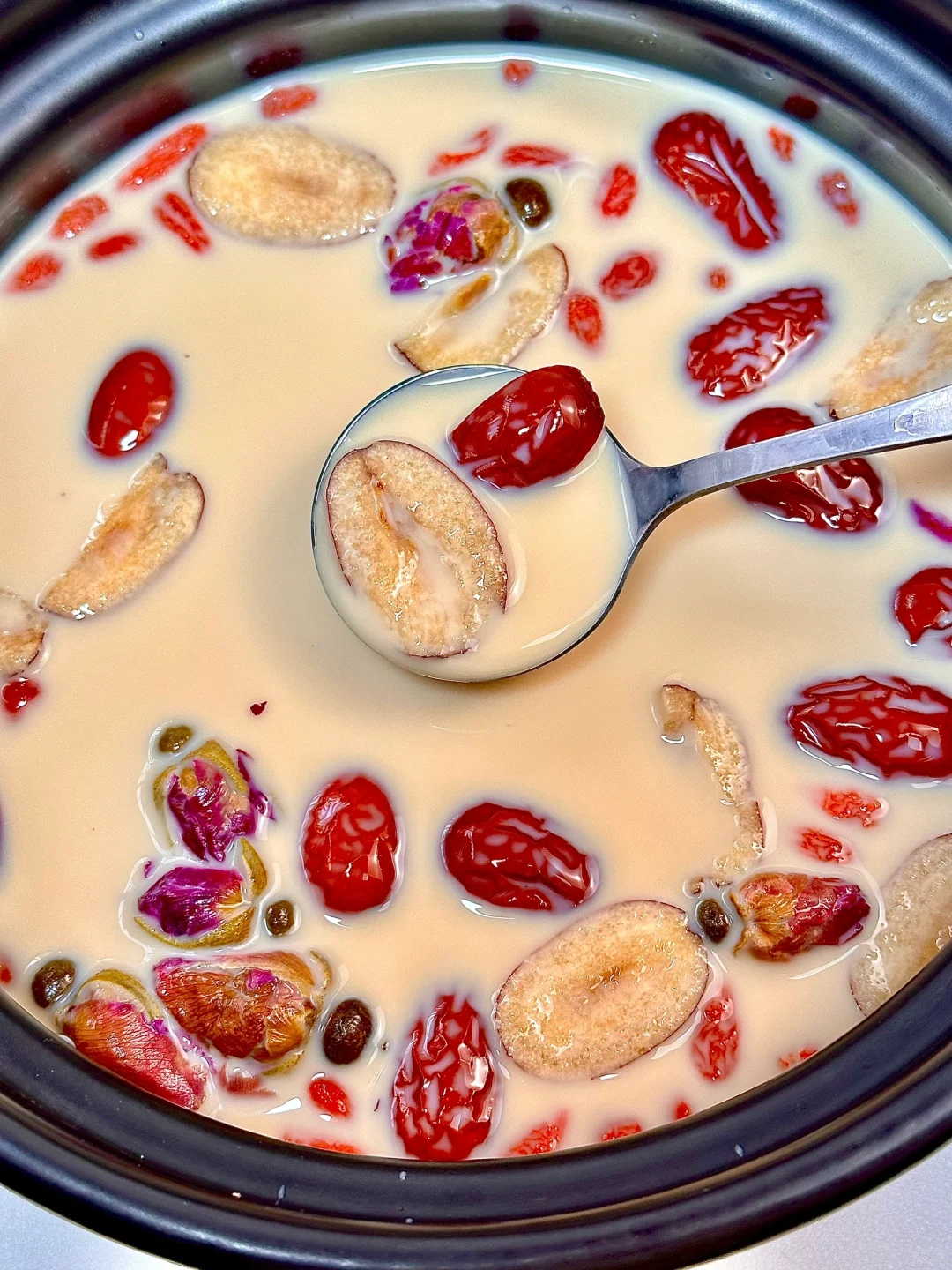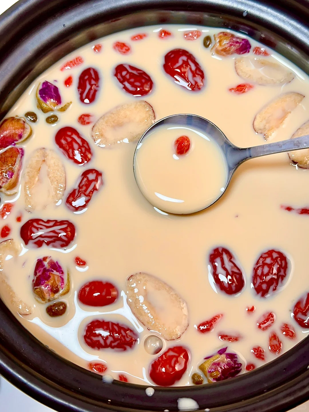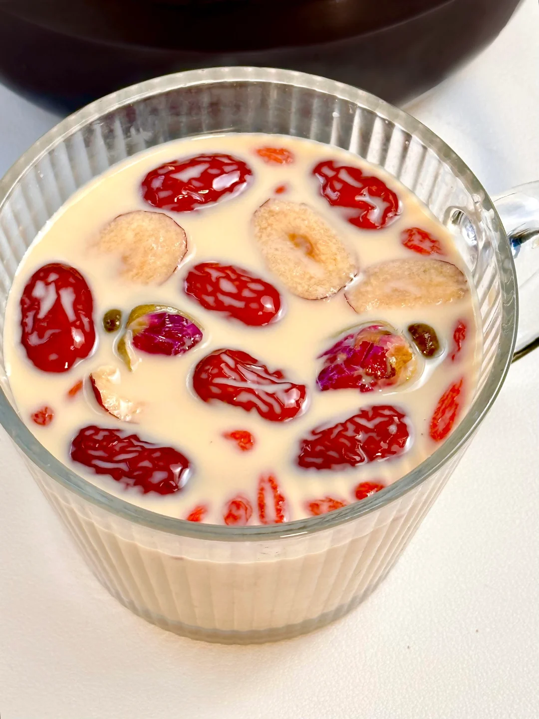 红枣牛奶茶!女孩子一定要多多喝这个![赞R] 奶香十足,入口浓醇丝滑!带着红枣的香甜 特别是生理期的时候,常喝小脸红润润哒! - ✅食材:红枣、红糖、枸杞、牛奶和玫瑰花🌸 做法都在图上啦!快去学!我发4!真的吼吼喝 香香甜甜的,谁还点奶茶呀哈哈哈🤣
