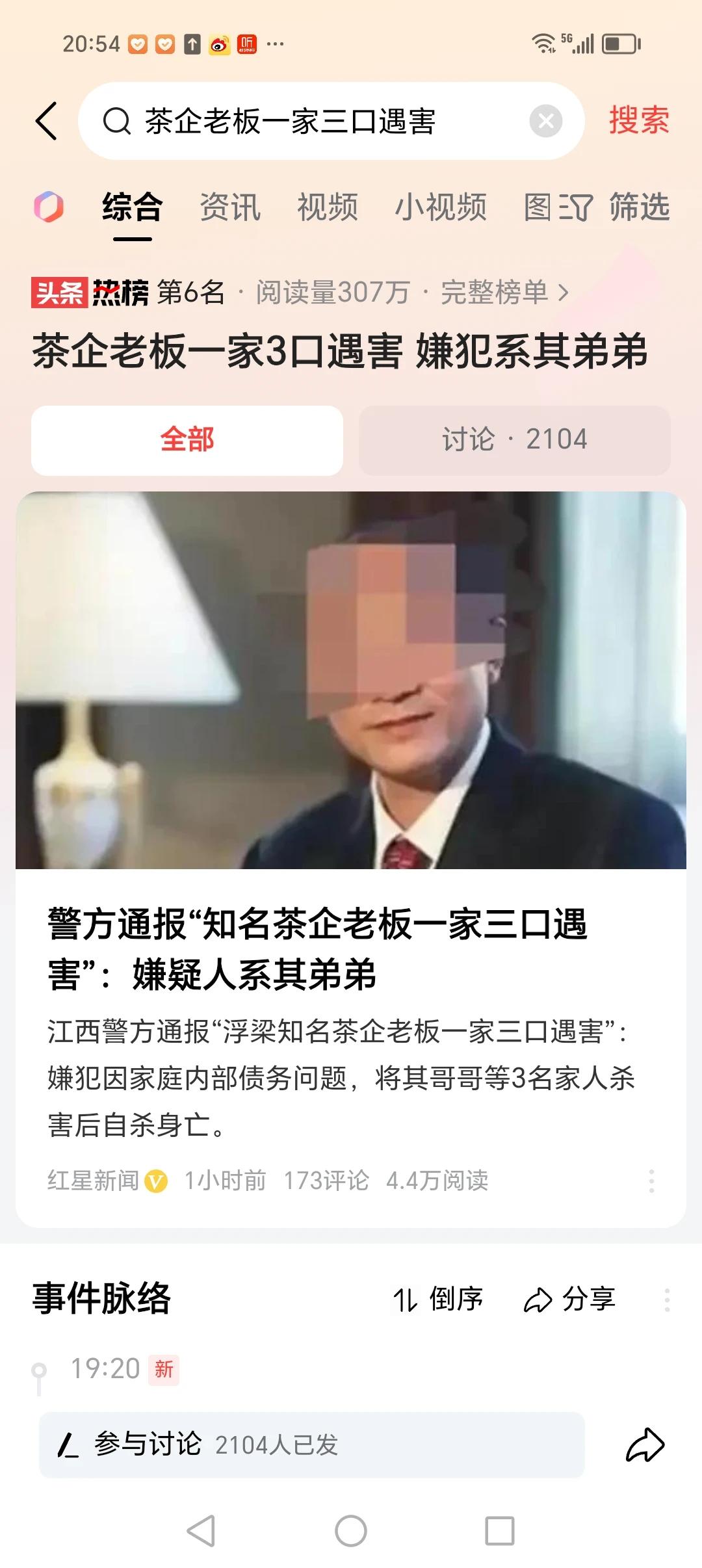 亲弟弟把自己的亲哥哥一家三口杀害,自己也自杀身亡,这是几辈子的仇恨,这弟弟难道疯了吗,居然这么去做,2024年4月13日晚18时许,浮梁县县浮梁镇旧城村一茶叶店发生一起刑事案件。 弟弟把哥哥一家人三口都杀害了,哥哥嫂子还有孙子。 杀人的弟弟是吴某进(男,57岁,浮梁县人。 死的是哥哥吴某前及嫂子汪某华、还有孙子吴某澄共三名家人。 弟弟把哥哥三口杀害后,自己也自杀身亡。 吴家总共死了4口人 。 据知情人透露:幸亏孙女没在家,逃过一劫。 为什么弟弟要痛下杀手,杀害哥哥一家人。 原来都是钱的祸。 因为债务纠纷。 这个哥哥吴某前,曾是江西多家茶企的股东和高管。 景德镇市殡仪馆工作人员也说:4月14日凌晨,殡仪馆工作人员接过当地公安通知,从案发地运回来4具遗体。 都是钱闹得,让兄弟相残相杀。 唉,为了钱和亲人反目,自相残杀,不值得啊! 那说,冤有头债有主,这小孩子碍这个男人什么事? 论辈分,这小孩子还要叫这个凶手一声爷爷。 对于小孩子,咋下得去手。 有知情网友说了杀害哥哥一家人的原因,不知道是不是真的? 网友:弟弟杀了哥哥,嫂子还有侄子的孩子,后面凶手自杀了,大概的原因是,哥哥找弟弟帮忙借80万元,弟弟没有,于是弟弟让自己儿子名义借了80万给哥哥,后来钱到期了,自己多次找哥哥要钱,哥哥就是不给,多年了,弟弟平时就是点火就着的脾气,冲动了给哥哥嘎绝种了。什么知名企业家,自家人帮忙借的钱都不还,毛线荣誉,都是叫的好听。 如果这个网友说的是真的,那这个哥哥就有点不地道了 。 借钱就是救急,有钱了就赶紧还,谁家的钱都不是大风刮来的。 何况还是弟弟家孩子借的。 肯定是借银行的,有利息的那一种。 这亲兄弟必须明算账。 这账目清,才是好弟兄。 不管啥样的新朋好友,都要明算账,分的清清楚楚才没有后患。 这让我想起一首诗。 煮豆燃豆萁,豆在釜中泣, 本是同根生,相煎何太急。