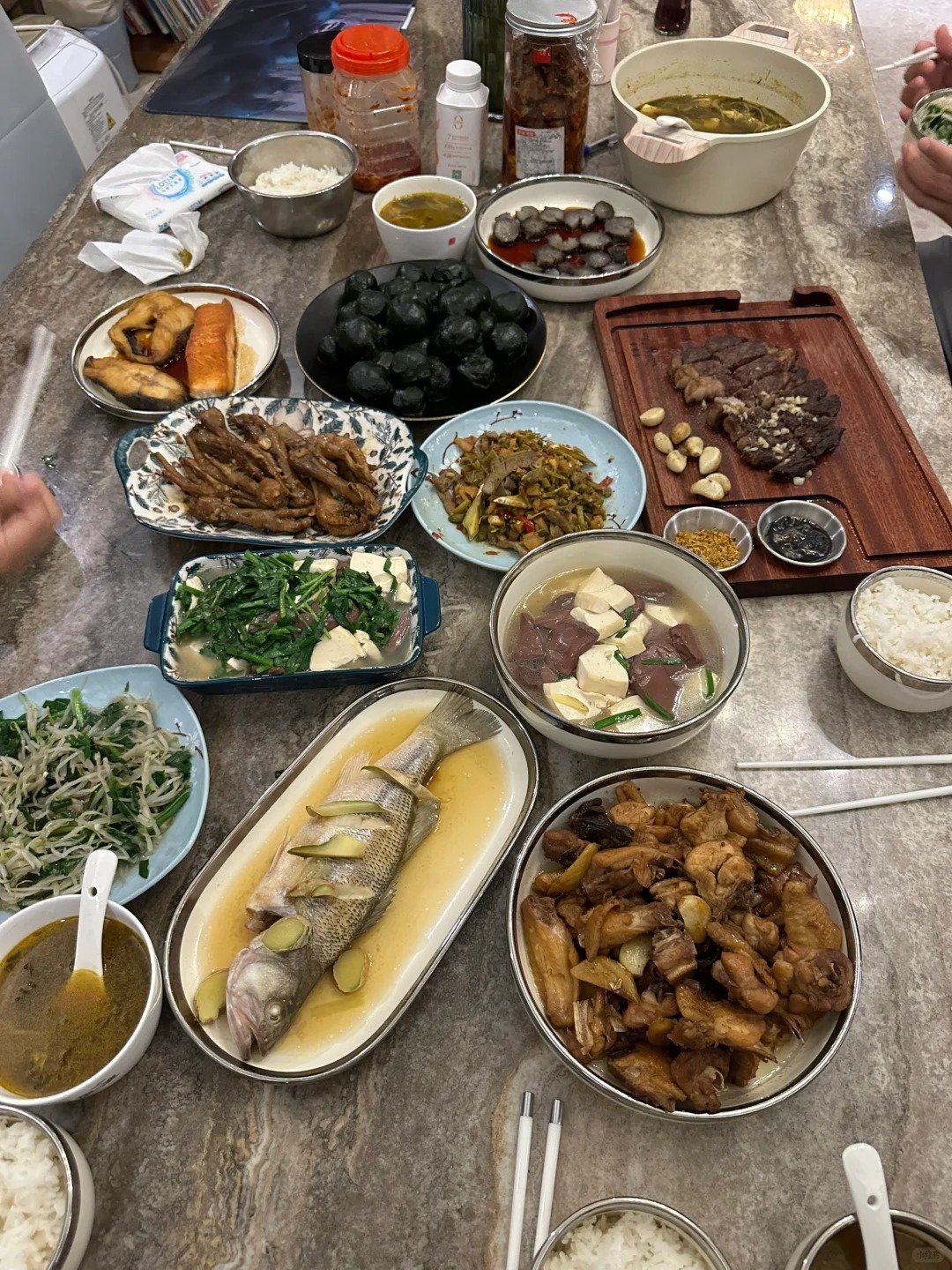 这家有十来口人吗?晚上吃这么多?南方人不是都饭量挺小吗?