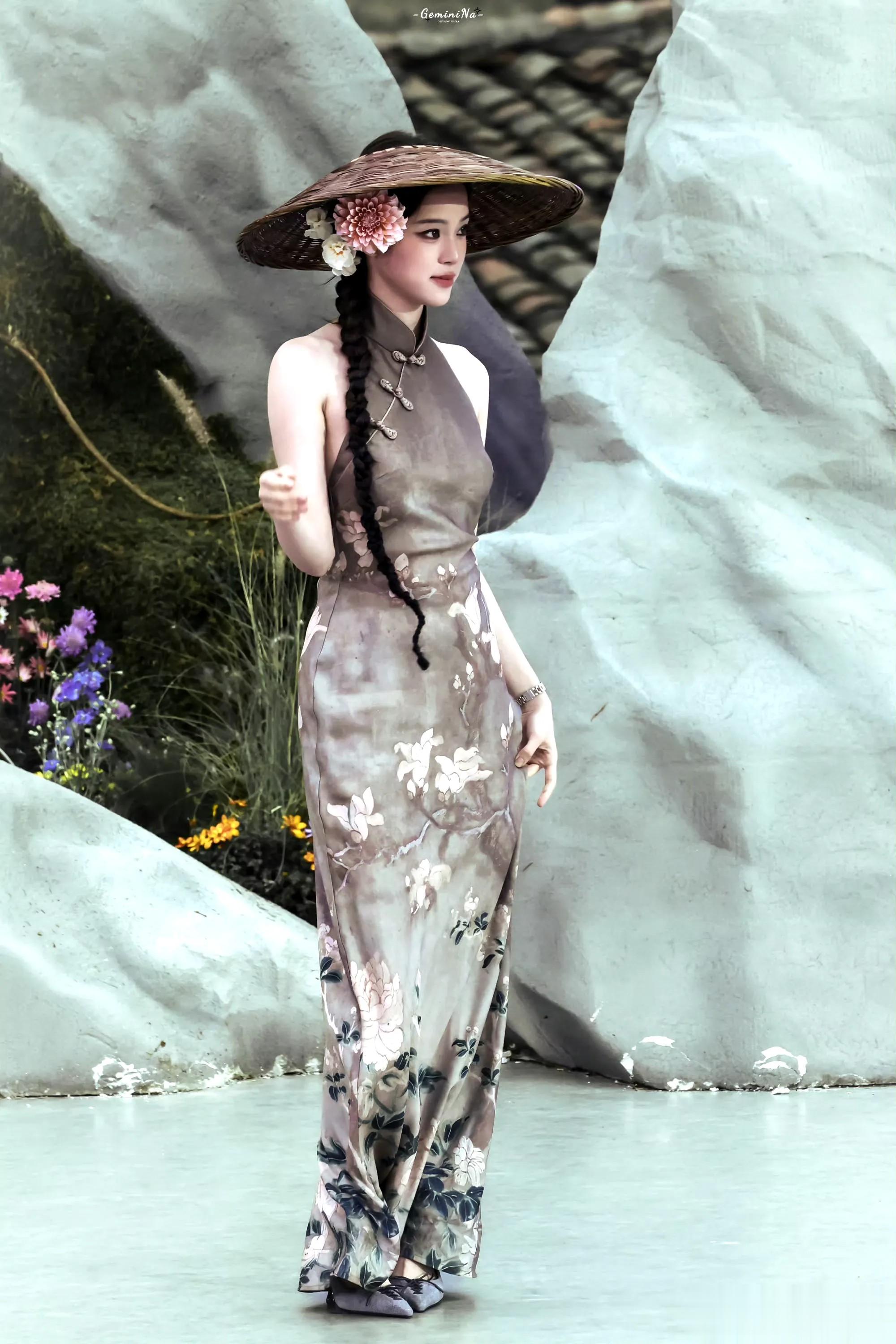 其他小花中欧阳娜娜采用了旗袍造型戴着斗笠,扎着麻花辫的她别有一番韵味。