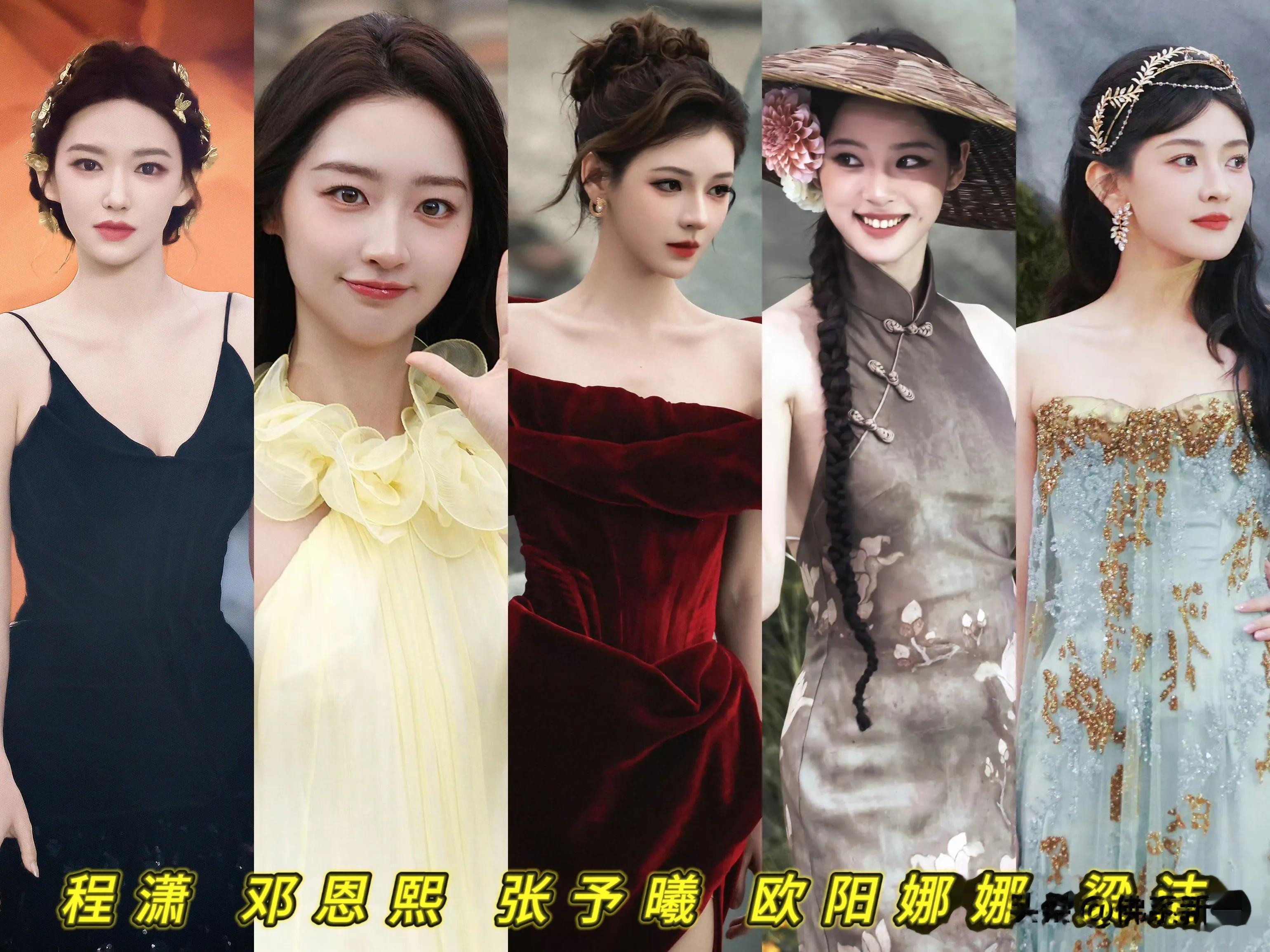 张予曦红丝绒复古美人,邓恩熙清纯可人,程潇黑色吊带裙完全纯欲美