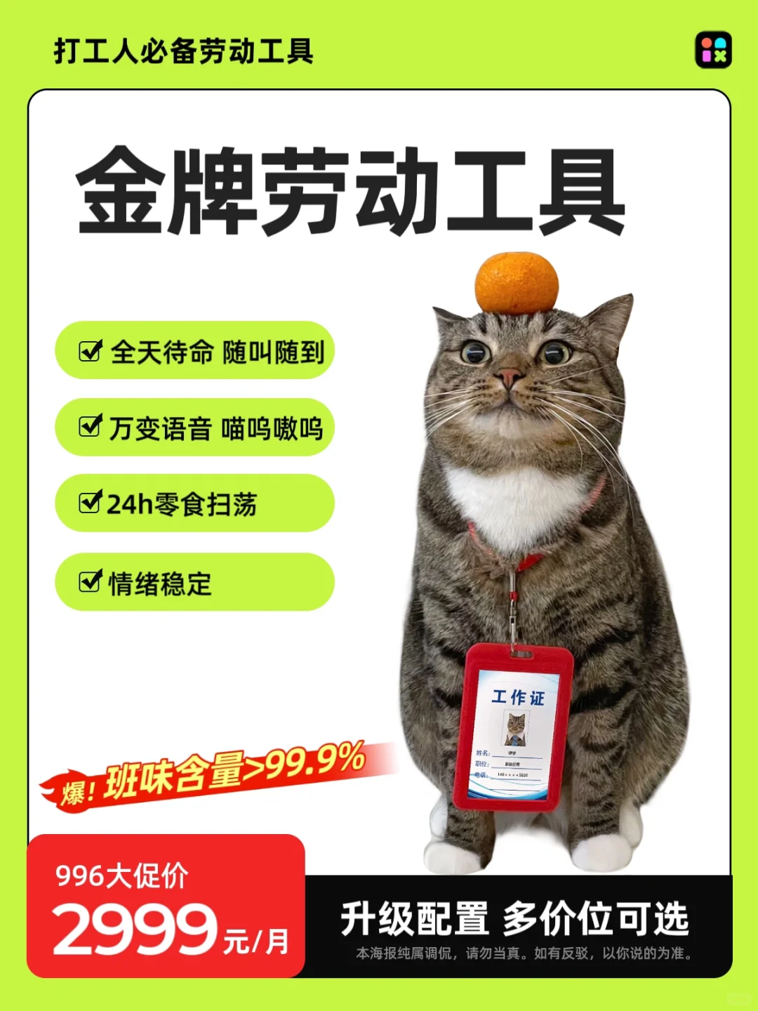 这是我司一款喵喵劳工!已经把它的猫证扣了,它应该没办法离职吧?[doge]