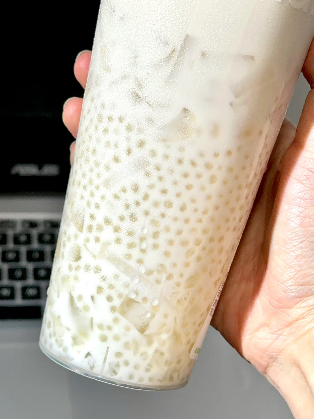 感谢茶百道的邀请品鉴~黄金椰椰乌龙➕冻冻➕小西米➕脆啵啵,去糖少冰,浓郁的椰奶香搭配乌龙茶,清爽不腻!我爱s!😭