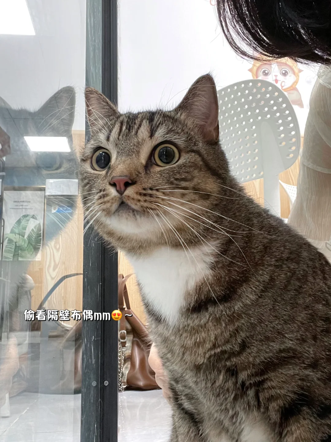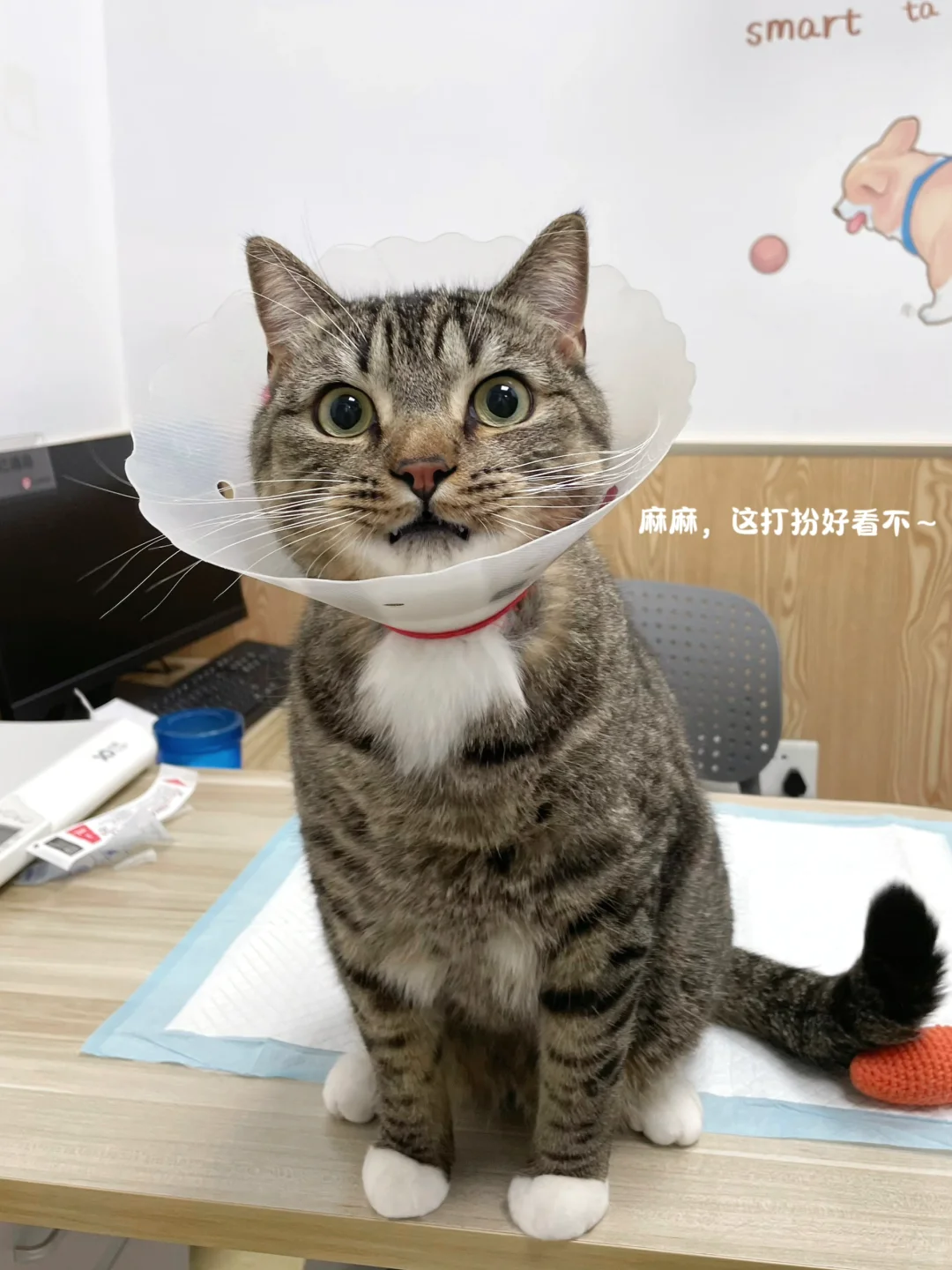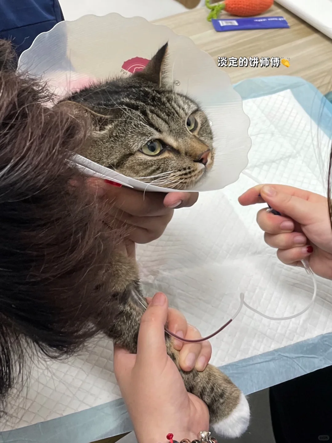 这下饼子一路到医院诊室都没闹,紧张害怕的情绪得以缓解啦!抽完血还站门边吃瓜[大笑R](应该是在偷听对面诊室的猫咪嗷嗷大叫˃ʍ˂)