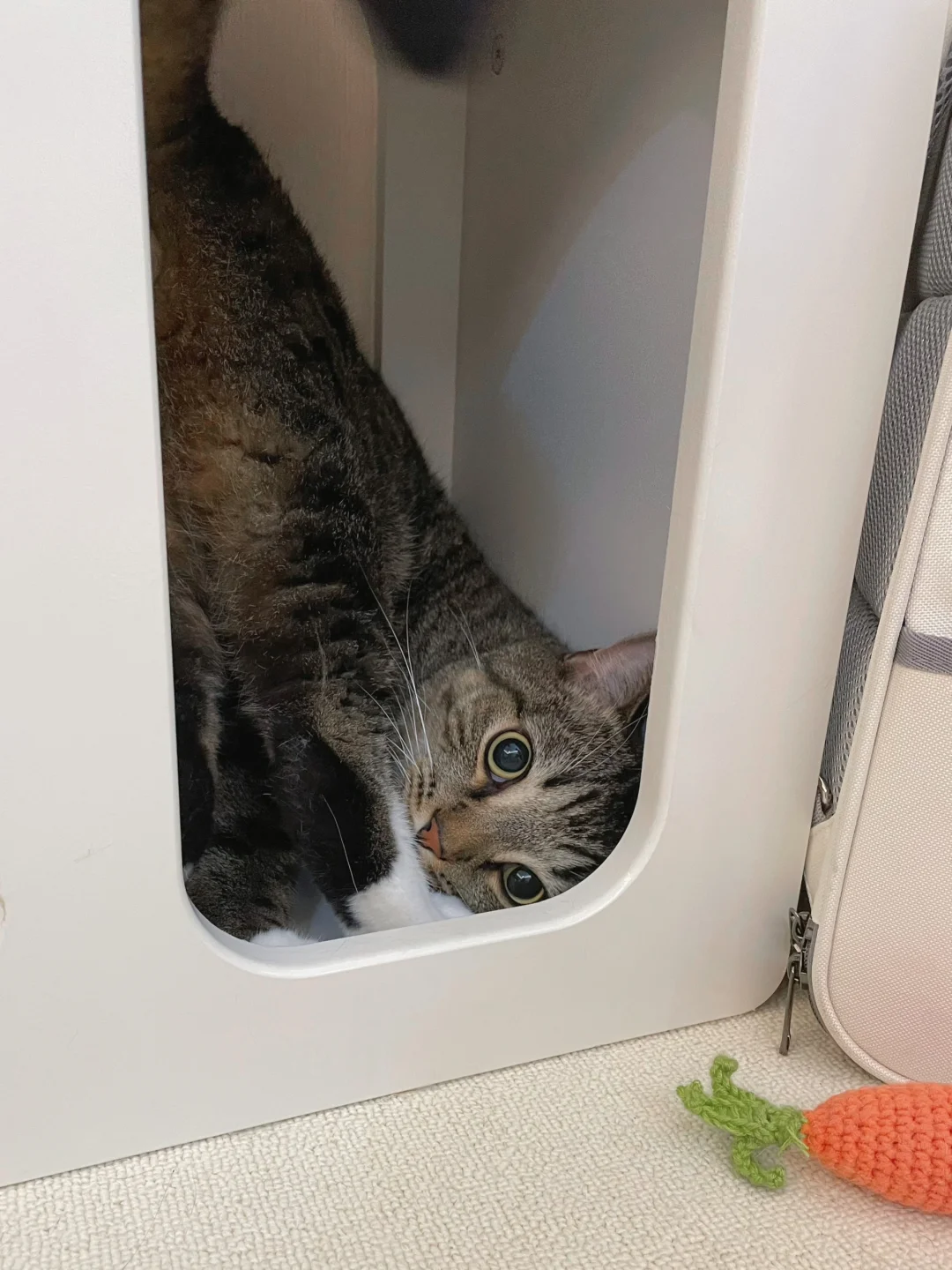 饼饼平时的照片看起来没心没肺的,实际上它是个内心脆皮的社恐猫!(⸝⸝•‧̫•⸝⸝)比如带它去🏥做体检,胆小饼缩角落里就是不出来[捂脸R]
