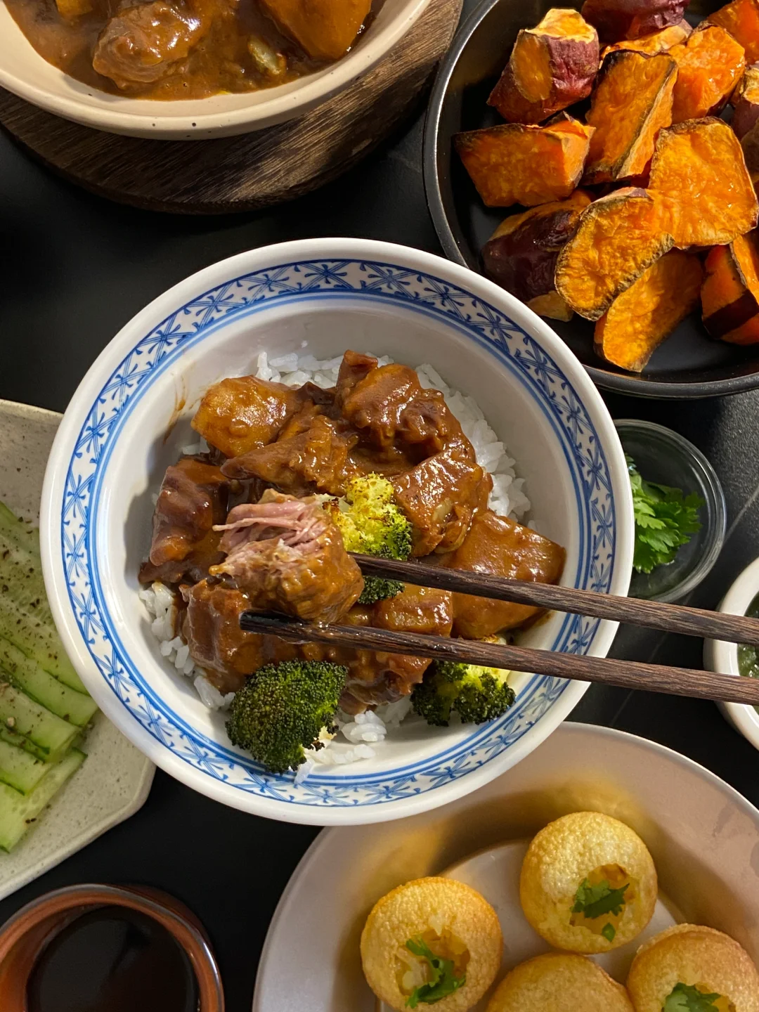 今日食谱📜咖喱牛腩饭玛莎拉脆球烤地瓜🥢