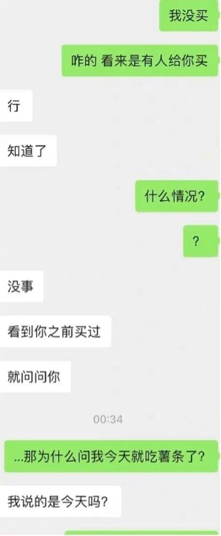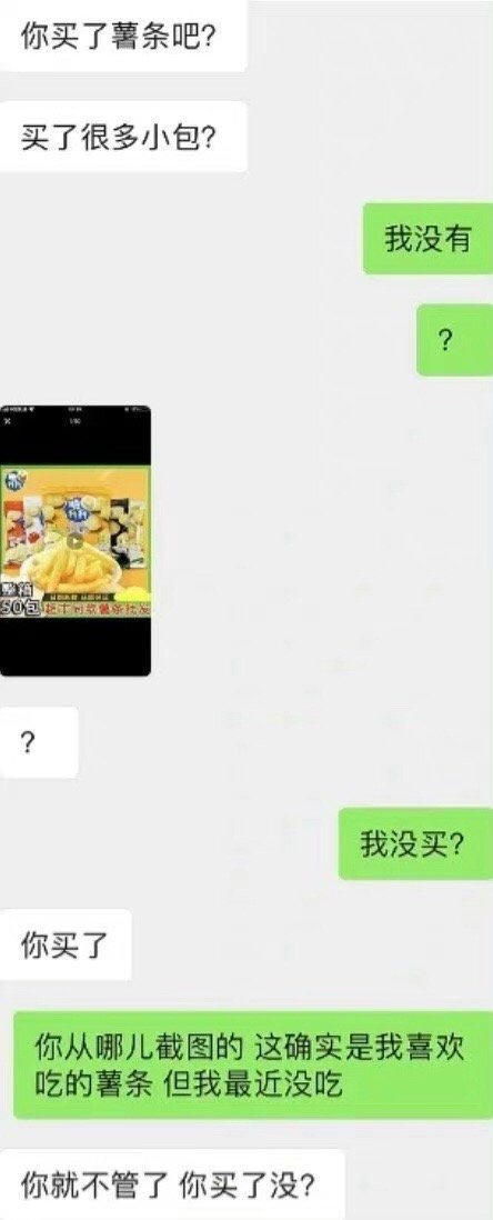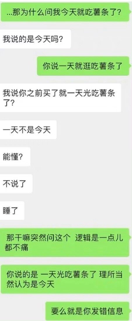贡献:我正准备睡觉,互道晚安,男朋友突然莫名其妙地说他一天只吃了薯条这是合理的还是他传达了错误的信息