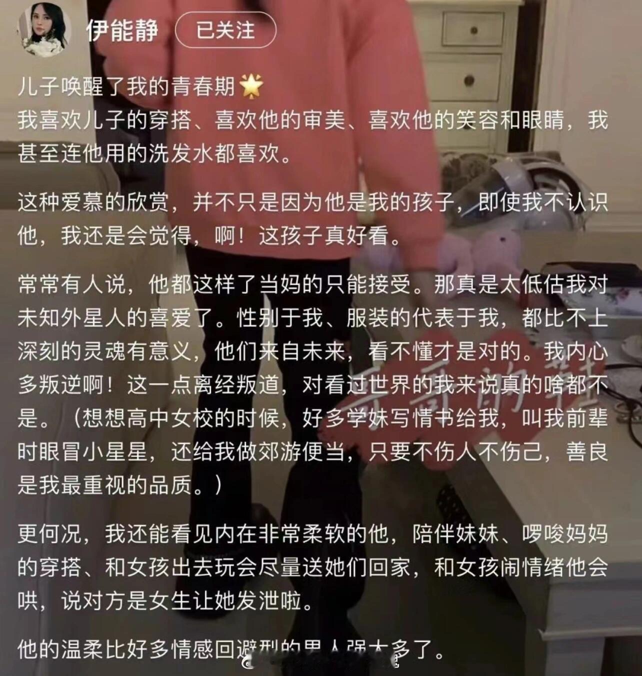 看到伊能静把恩利穿搭从头到尾的夸奖,大大方方晒了笔记,很多人都说作为妈妈,她真的好会给孩子情绪价值