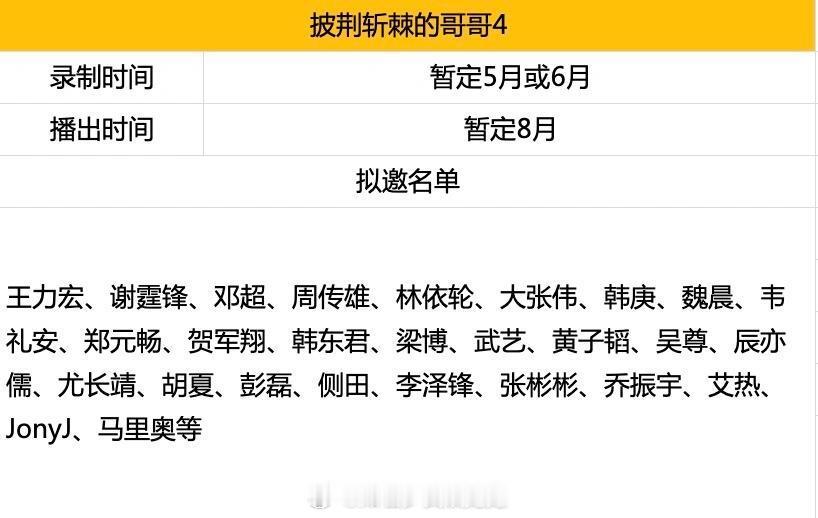 披哥4网传名单,王力宏、谢霆锋、邓超、周传雄、林依轮、大张伟、韩庚、魏晨、韦礼安、郑元畅、贺军翔、韩东君、梁博、武艺、黄子韬、吴尊、辰亦儒、尤长靖、胡夏、彭磊、侧田、李泽锋、张彬彬、乔振宇、艾热、JonyJ、马里奥等,有你喜欢的他吗?