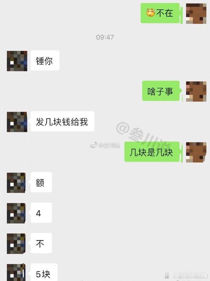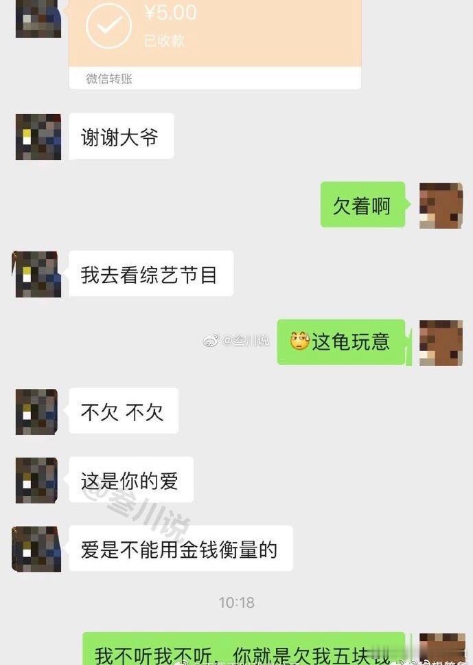又不是5万块,5块钱,穷不了你富不了她,你急个什么劲