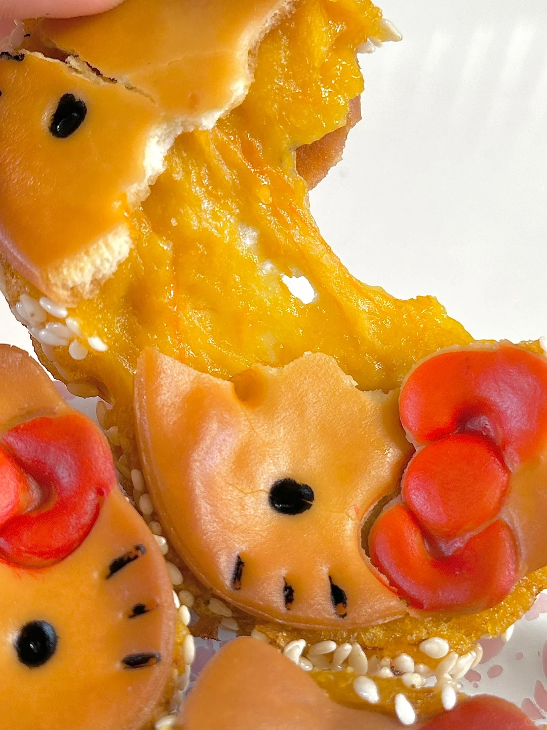5.南瓜馅夹在饼干中间周围沾上芝麻