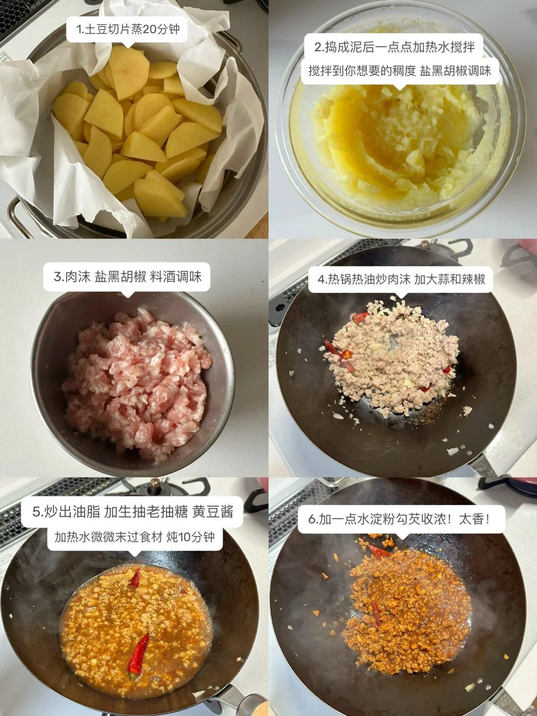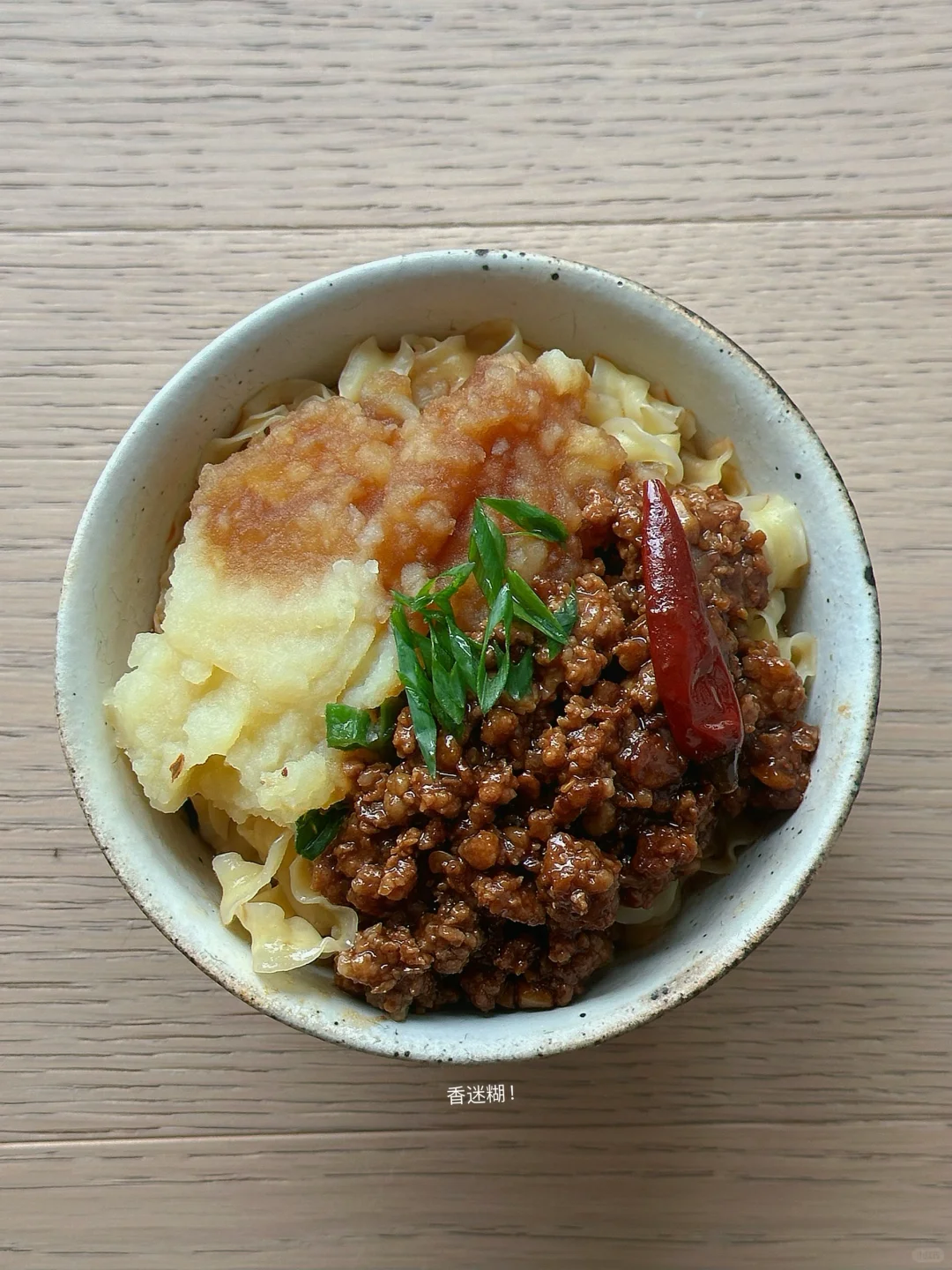 肉沫土豆泥盖煮好的面上 淋上附带的醋包