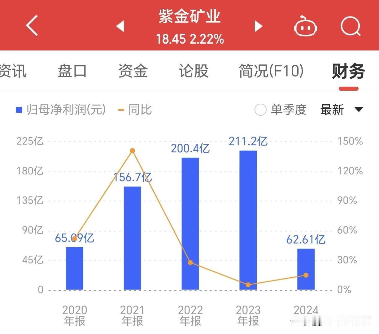 #紫金矿业# 紫金矿业这业绩也是相当炸裂,2020年净利润65亿,2023年达到211亿,2024年一季度为62.61亿,同比增长15%。从股价来看,也是表现不凡,2018年仅2.16元,目前已经到了18.45元。令人艳羡。你觉得紫金矿业如何?