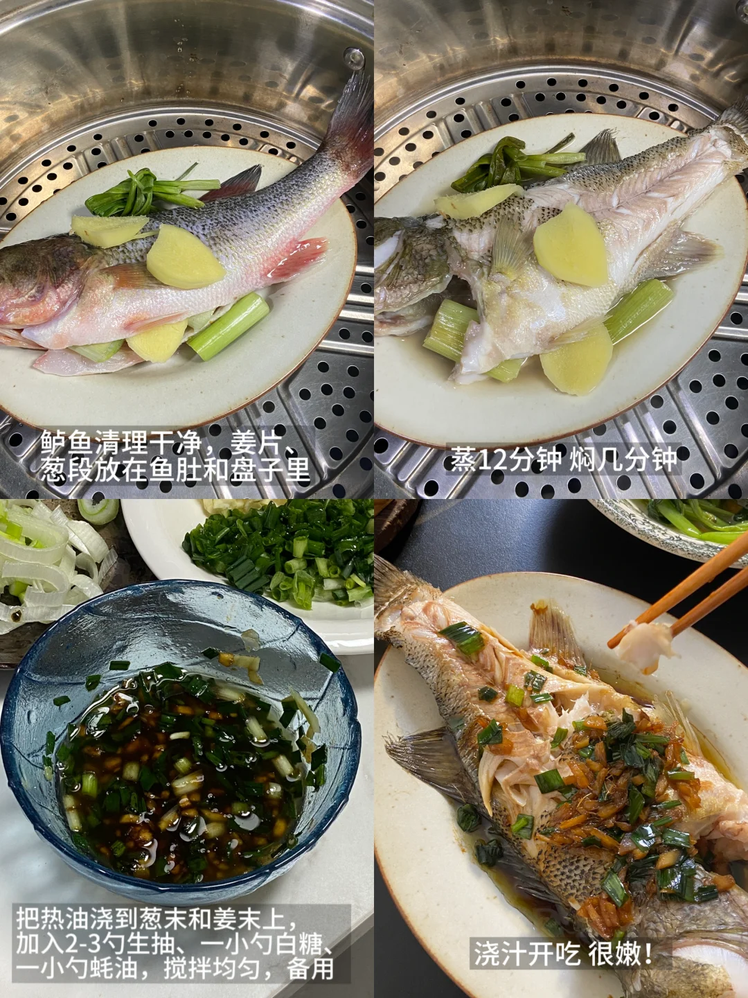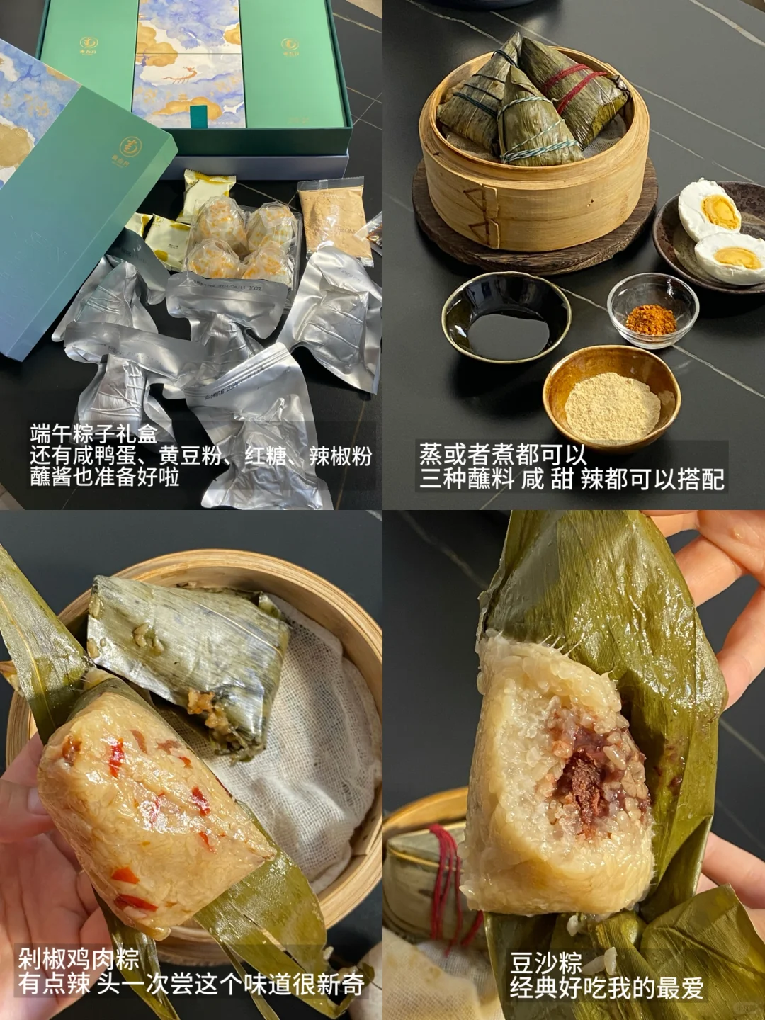 端午快到啦!少不了粽子在桌上,咸的甜的我都爱吃!今天是清淡的二人食菜谱 ——————【葱油鲈鱼】—————— 食材: 鲈鱼|葱|姜|葱油汁 步骤: 1)准备葱油汁:把热油浇到葱末和姜末上,加入2-3勺生抽、一小勺白糖、一小勺蚝油,搅拌均匀,备用 2)鲈鱼清理干净,姜片、葱段放在鱼肚和盘子里,我这条鱼小300g左右,蒸12分钟焖几分钟即可 3)淋葱油汁,开吃 ——————【清炒空心菜】—————— 食材: 空心菜|蒜末|干辣椒 步骤: 1)锅中下油,先炒香蒜末,再把空心菜下入 2)一勺生抽、一点盐和鸡精,最后加几根干辣椒,炒到空心菜变色变软即可 朋友提前错峰送的南台月山海端午礼盒好惊喜呀,小众高级、又有调性,不愧是成都30年老字号品牌,真太有档次啦。而且有好多种口味,粉蒸肉粽子、高汤鲜肉粽子、豆沙粽、火锅牦牛肉粽子,对于我这种咸粽甜粽党都爱吃的人来说,简直太爱了!每个口味都是心头爱。一般蒸熟或者煮熟都可以,馅料很足,一口下去全是料!太满足啦!!简直是粽子届的“白月光”还有很可爱的竹香小粽子,素白清香,搭配黄豆粉、红糖蘸料,当早饭我也很喜欢。吃完后立马也下单两盒送爸妈