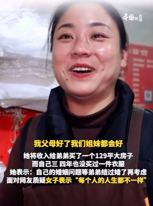 扶弟魔天花板!安徽滁州,一33岁女子卖烧饼苦干12年,每天4点半起床,晚上11点睡觉,每天卖3000张烧饼,自愿将攒下的钱,全部交给父母,给弟弟买房买车,连店也过户给弟弟。女子4年多,没舍得给自己买件新衣服,不仅没结婚,连恋爱的时间都没有。网友:这样的姐姐,没人敢娶。 “等着我弟弟结婚了,我在考虑我自己。” “我弟弟好了,父母也会好,父母好了,我们姐妹都会好。” 安徽滁州某街头,有一间小小的烧饼铺,虽然店面不起眼,但每天前来购买的顾客络绎不绝。 铺子的主人是一位33岁的女子,名叫潘女士,她虽然年纪不大,但脸上的皱纹和那双疲惫的眼睛却早已被超过了同龄人。 每天清晨4点半,当大多数人还在甜美的睡梦中时,潘女士的闹钟已经准时响起,她迅速地洗漱完毕,穿上那件已经被油烟熏得有些发黄的工作服,开始了新一天的工作。 和面、揉面、擀饼、烤制,每一个步骤她都熟稔于心,每一个步骤她都亲力亲为,力求做到最好。 也正因为如此,潘女士的烧饼皮脆馅软,香气四溢,深受顾客的喜爱,每天的销量相当可观。 据潘女士所说,她从19岁开始学习打烧饼,到现在已经有14年的时间了。 高峰期的时候,每天要卖出3000张烧饼,月收入也达到了10万元,这个数字听起来惊人,却是她日复一日辛勤劳动的成果。 每当看到顾客满意地离开,潘女士的脸上总会露出欣慰的笑容,但是这笑容背后,却是她无数的付出和牺牲。 为了维持这家烧饼铺,李梅每天忙碌到深夜,至少到11点半才能收摊,有时候甚至是更晚,她几乎没有自己的时间,更别提什么娱乐和休闲了。 在她的生活中,除了烧饼铺就是家,两点一线,简单又单调。 这些年来,潘女士将赚来的钱全都交给了父母,也给弟弟买了辆车,更是给弟弟买了套129平的房子。 当记者问及她为何不给弟弟买个小一点的,这样自己也能买个小一点房子的问题时。 潘女士回答说:“没这么想过,因为父母以后总是要跟着弟弟住的,到时候我再给自己买个小一点的就可以了。” 如今,潘女士甚至连烧饼铺也过户给了弟弟, 在她看来,这是她作为姐姐和女儿应尽的责任和义务,她从不觉得辛苦,也不求回报,只是默默地付出着,用自己的双手为家人创造着更好的生活。 当记者问潘女士,为什么不结婚,如果结了婚就有个男人帮助她了。 潘女士对此也给出了解释:“我也考虑过这个问题,但还是要等弟弟结过婚了,在考虑我自己。” 四年来,潘女士没有给自己买过一件新衣服,她的衣柜里,除了几件洗得发白的工作服,就是几件换季时母亲给她买的旧衣服。 她总是笑着说,自己每天都忙得团团转,哪有时间打扮自己?再说了,穿旧衣服也挺舒服的。 也正因为每天忙碌在两点一线,潘女士根本没有时间谈恋爱。 这样的潘女士,让周围的人都感到敬佩和感动,但也有一些人对此表示不解。 他们认为,潘女士为了家人牺牲了自己的幸福和人生,这样的做法值得吗?难道她就没有自己的生活和梦想吗? 对于这些问题,李梅总是淡淡地一笑而过。她觉得自己所做的一切都是值得的,因为她看到了家人的笑容和幸福。 至于自己的梦想和生活,她从未过多地考虑过,她觉得只要家人能够过得更好,自己就已经心满意足了。 潘女士说:“每天忙忙碌碌的,也想不到生活给我带来多大的苦。” 之前也有一些探店博主来到潘女士的店里拍摄,也发到了网上,但也有一些不好的评论,大致意思说潘女士是个“扶弟魔”,不为自己考虑之类的话语。 对此潘女士也知道,有时候甚至不好意思看。 她说:“每个人的人生都是不一样的,他们也许没有吃过我们小时候吃过的那个苦吧,不理解也是正常的。” 信息来源: 金彩云2022年11月26日《33岁女子卖饼12年,赚钱给弟弟买房买车。女子表示,等弟弟结婚了再考虑自己》 为了您更好的阅读互动体验,为了您能及时看到更多内容,点个“关注”,下期故事更精彩。