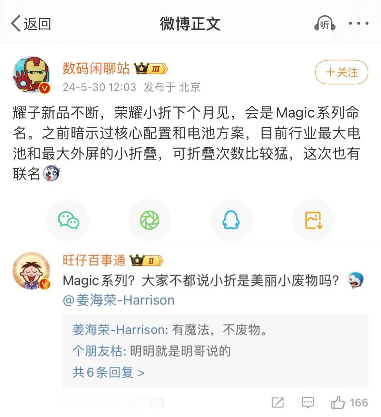 期待值拉满!#荣耀高管证实Magic家族将再添全新品类#据爆料,荣耀即将推出小折叠手机,应该会下个月正式登场。传言它有超大电池和外屏,也许会有保时捷设计版本。荣耀高管还说它“有魔法”。这让人充满好奇啊!荣耀什么时候官宣呢?