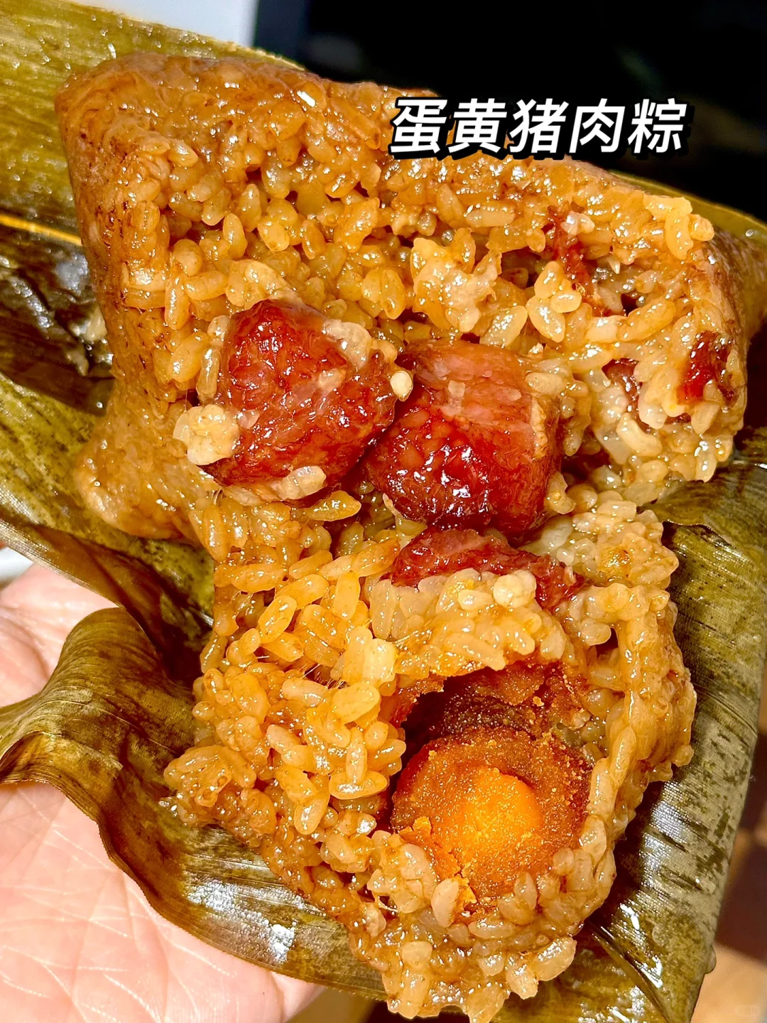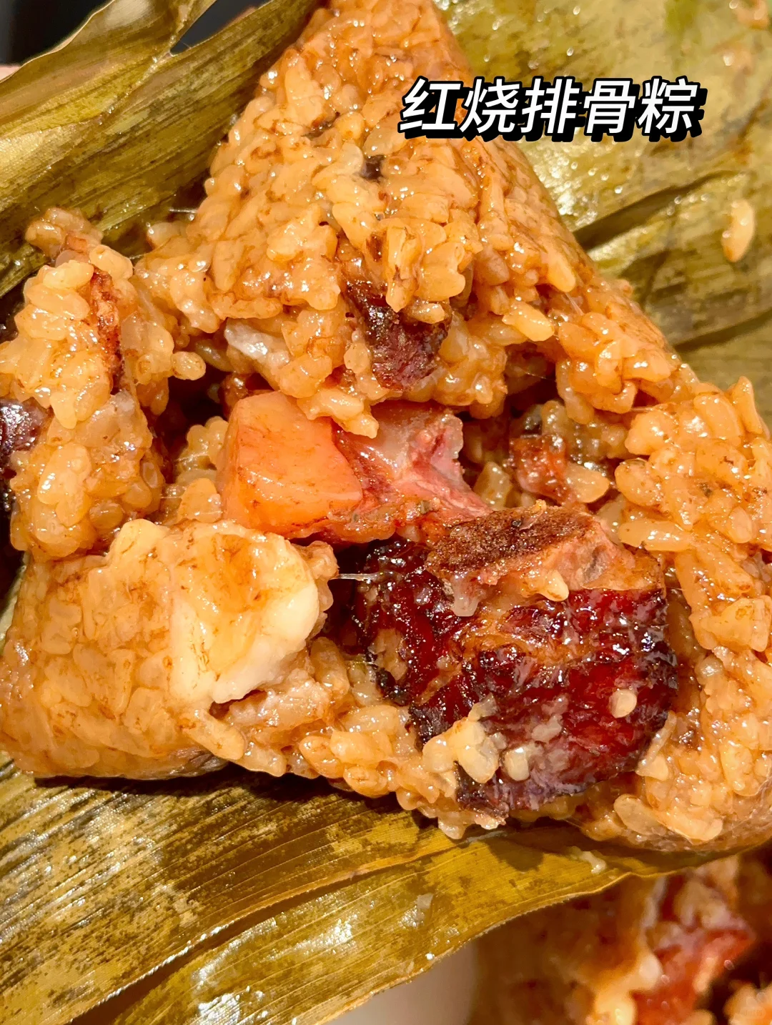 用料真的很扎实!特别是蛋黄猪肉粽!起沙流油的咸蛋黄搭配五花肉,肥瘦相间的猪肉超级香!肥肉部分入口即化一点也不腻!还有这个红烧排骨粽!🥰肉质好嫩好香!红烧排骨酱香浓郁融入到糯米里~满满都是料,我一口气忍不住炫两个!