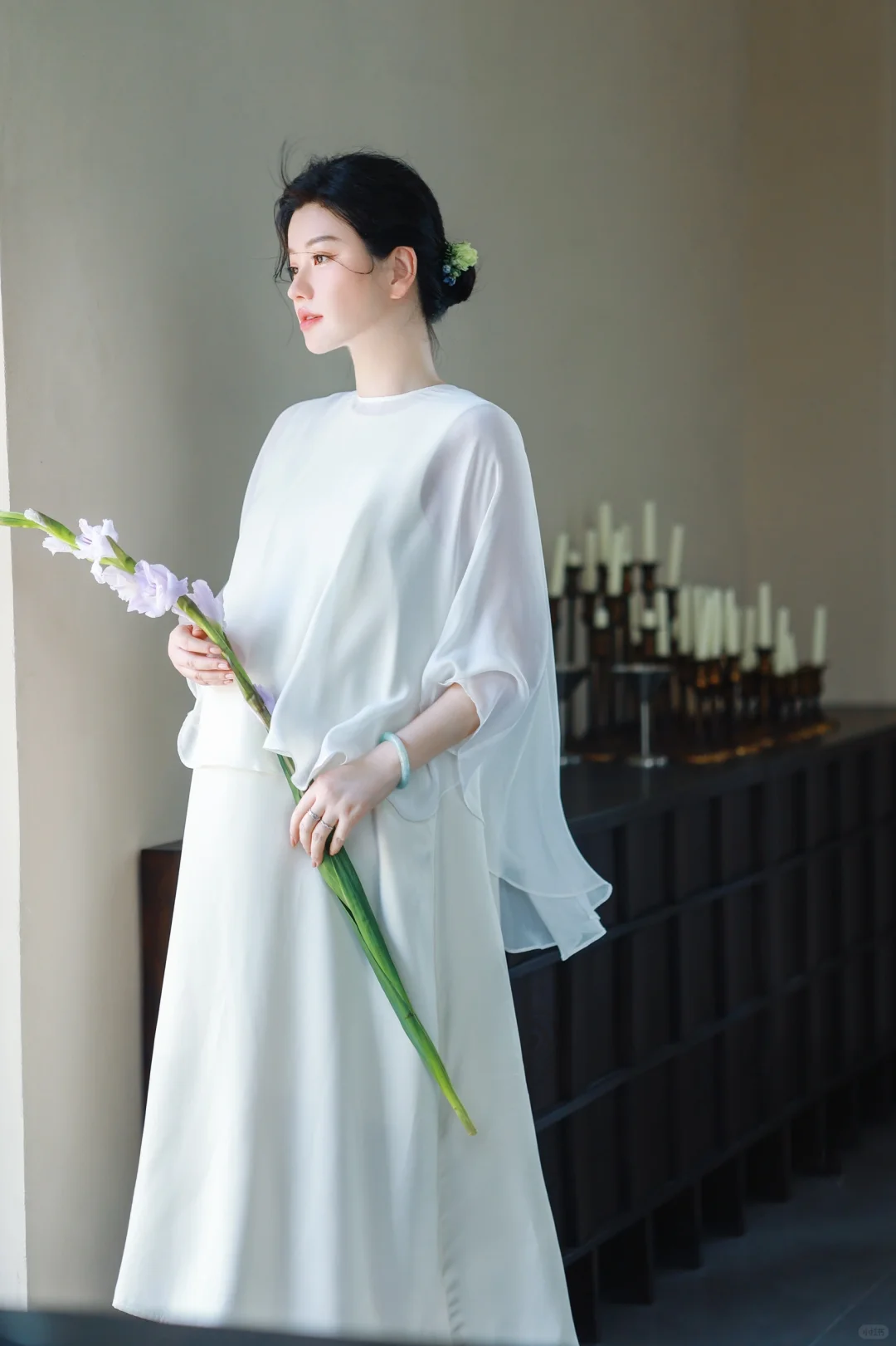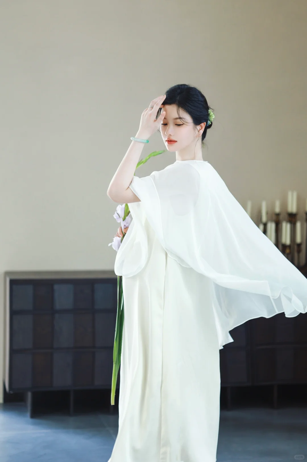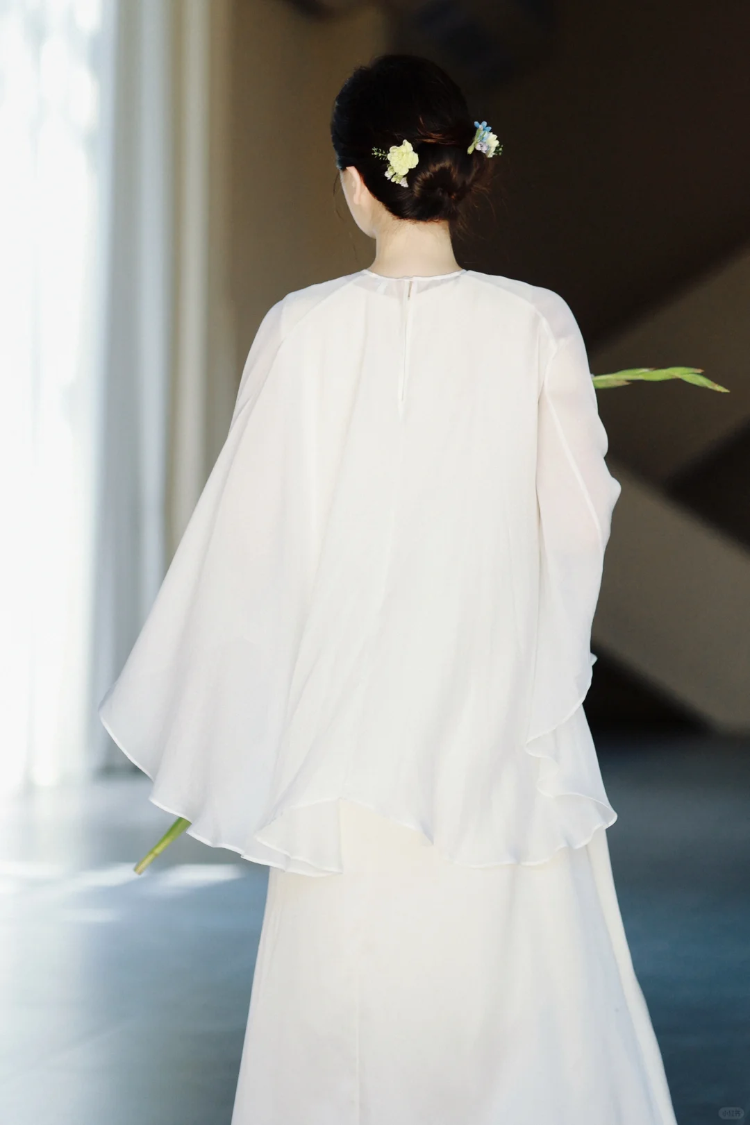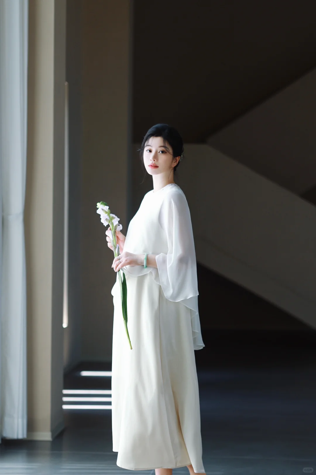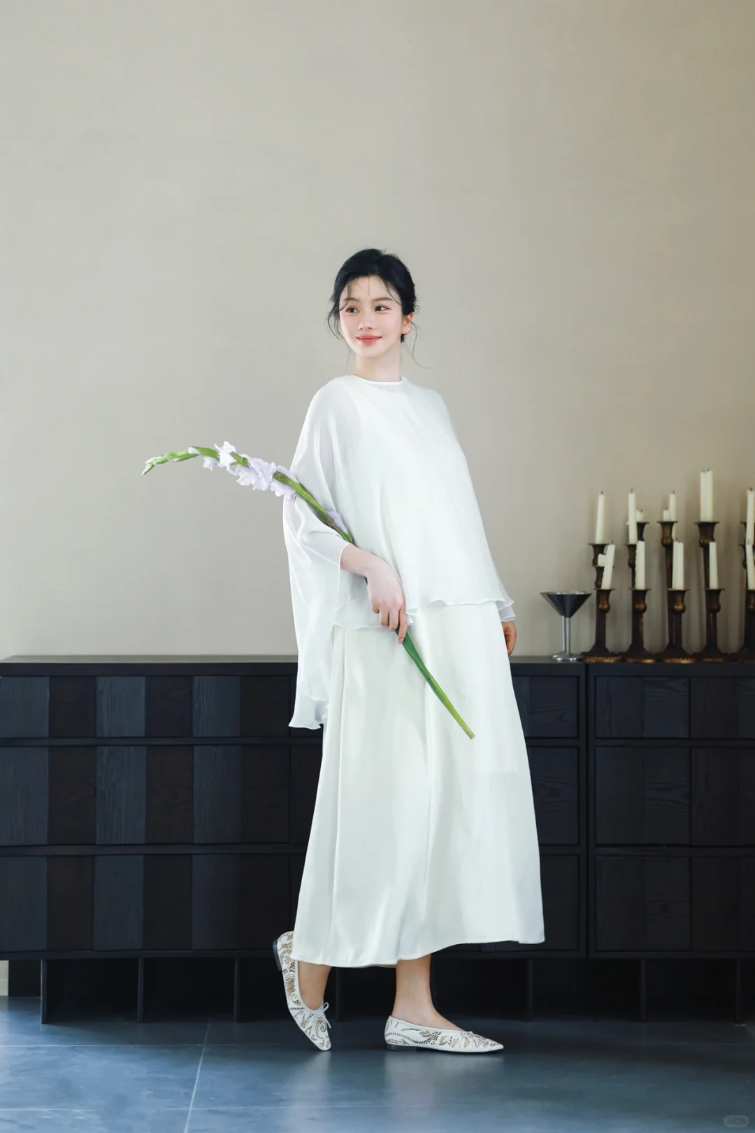 1️⃣如果不喜欢露肚子,可以在白色/米色长裙外穿一件朦胧的半透明真丝罩衫,再让风吹出孕肚的形状吧🫧超级出片[赞R]