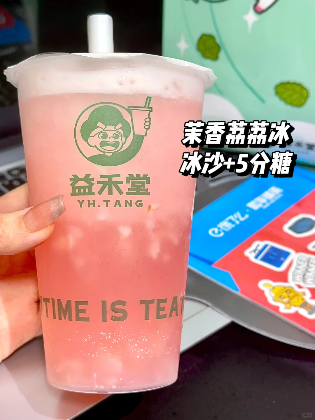1⃣️茉香荔荔冰:💗粉粉粉嫩嫩的!清新的茉莉绿茶和鲜甜的荔枝打成冰沙,一口就爱上了~喝完连呼吸都是淡淡的荔枝香,太少女啦!
