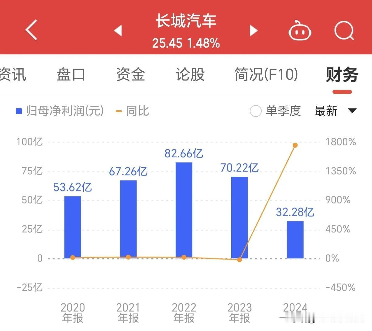 2023年长城汽车营收1732亿,同比增长26.12%,实现净利润70.22亿,同比下滑15.06%,增收不增利,2024年一季度,实现营收428.6亿,同比增长47.6%,实现净利润32.28亿,同比增长17倍。你觉得2024年长城汽车净利润能超越2023年吗?