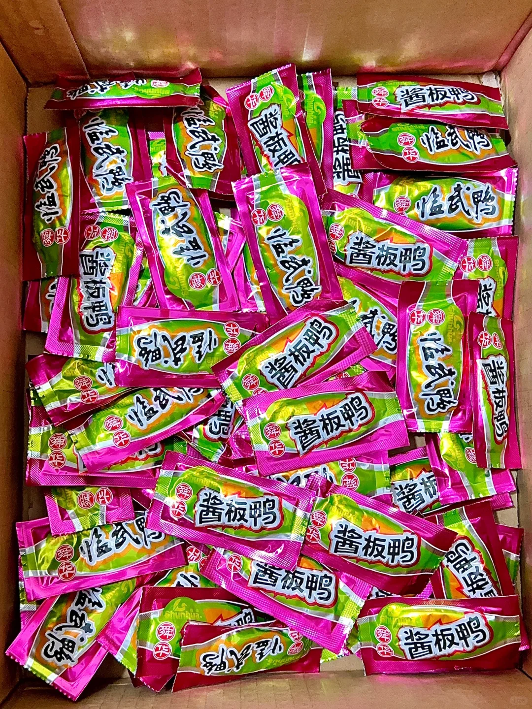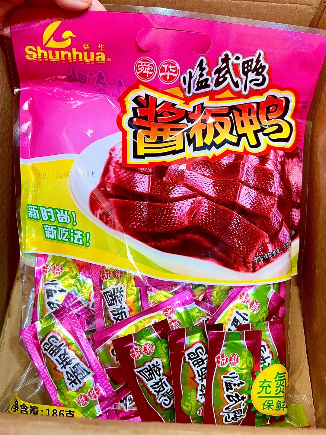 就这个舜华酱板鸭,独立方便小包装 湖南风味很足,还带点辣味🥵真的好过瘾! 是微微辣的,本广东人也可以接受的辣度 酱香浓郁!没有一点骨头,越嚼越香! 忍不住一袋接着一袋,炫到根本停不下来..…