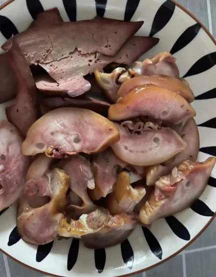 猪拱子加猪肝,淋上点蒜泥生抽加上醋!太下酒了[哭笑不得][哭笑不得]