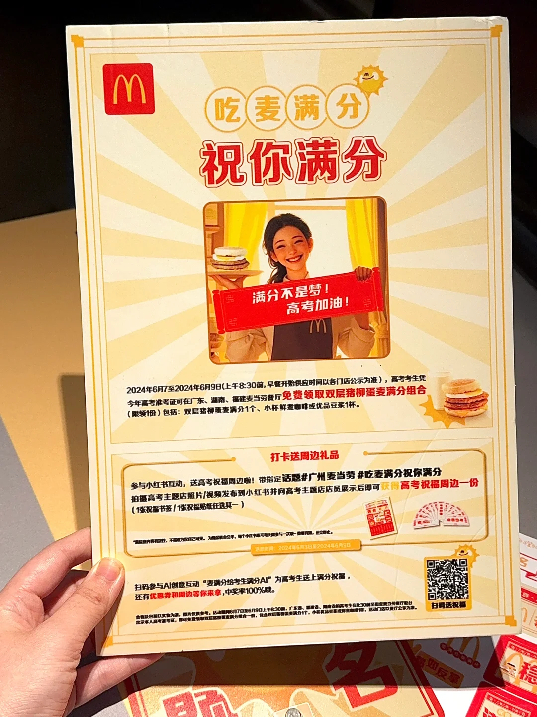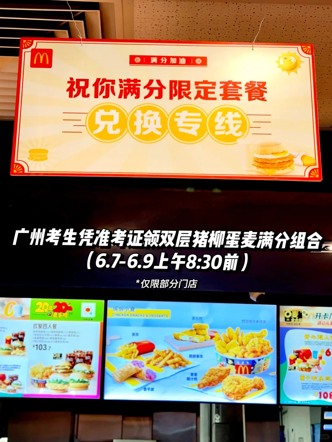 ⚠️tips:吃麦满分祝你考满分💯,我去的广州小北路旗舰店还有活动可以参加!高考生可以凭准考证领取一份免费双层猪柳蛋麦满分组合(活动时间:6.7-6.9上午8:30前)