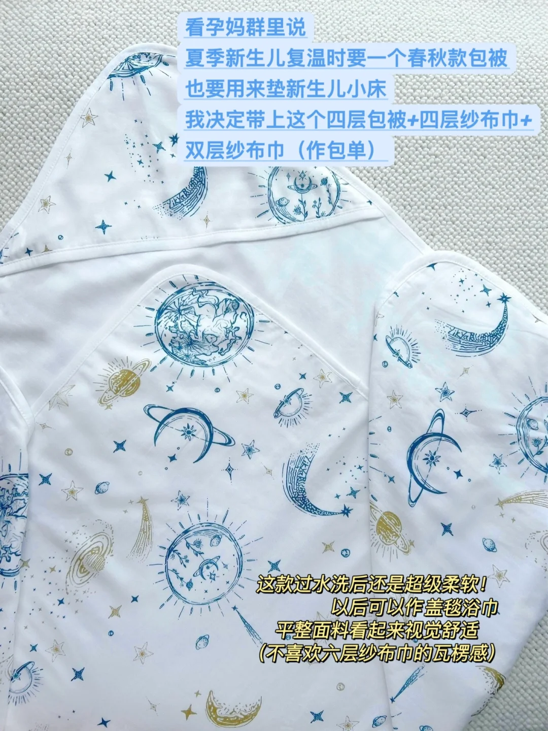 四层纱布巾四季可以用,比双层纱布巾保暖,我买了3个包被款四层纱布巾+一个普通大方巾,防止需要垫新生儿床。