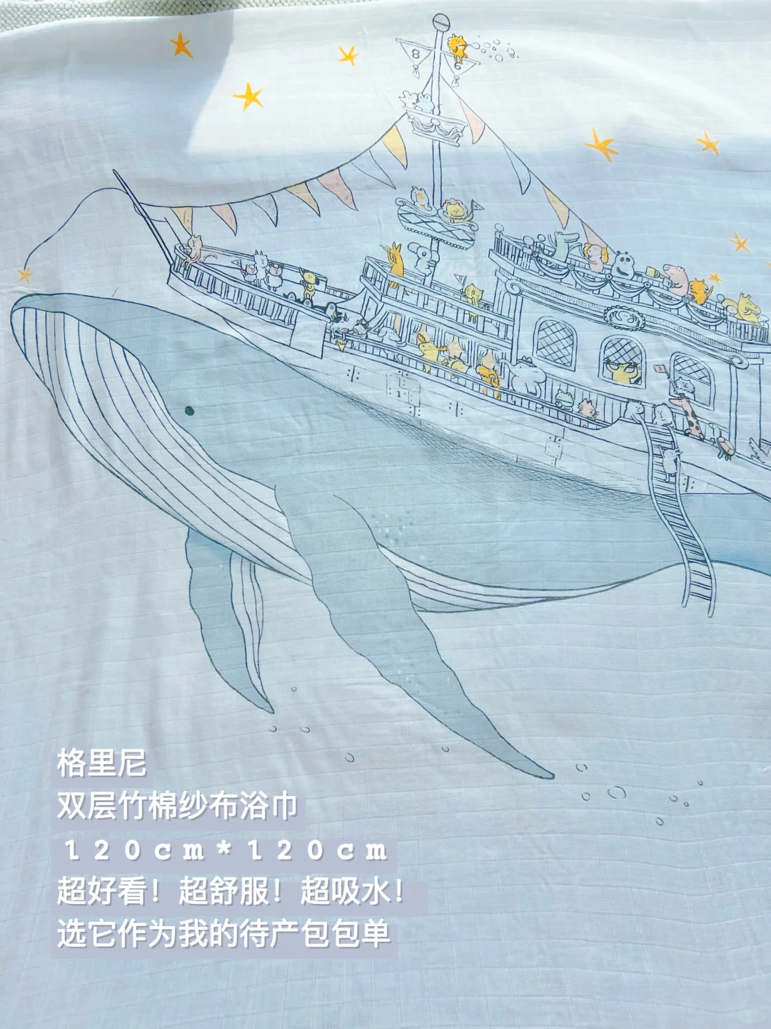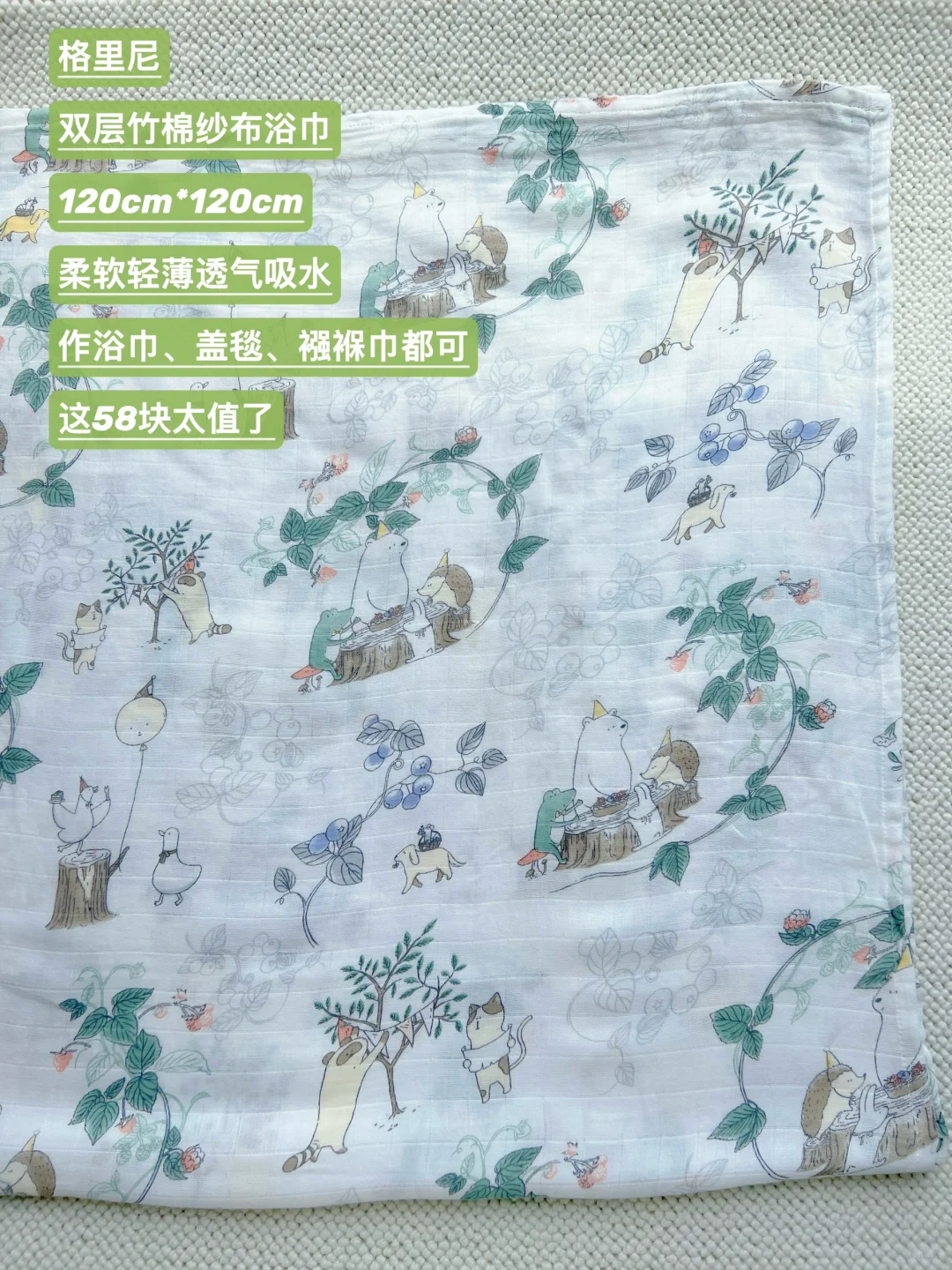 最实用的单品,可以作浴巾/防惊跳襁褓巾/床单/盖毯/外出时的遮阳帘。