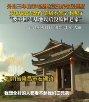 麻烦看官老爷们右上角点击一下“关注”,方便您进行讨论和分享!(信息来源:黄金30分-2024-6-12——《四川隆昌市石碾镇,邻居占自家宅基地高调修别墅》)